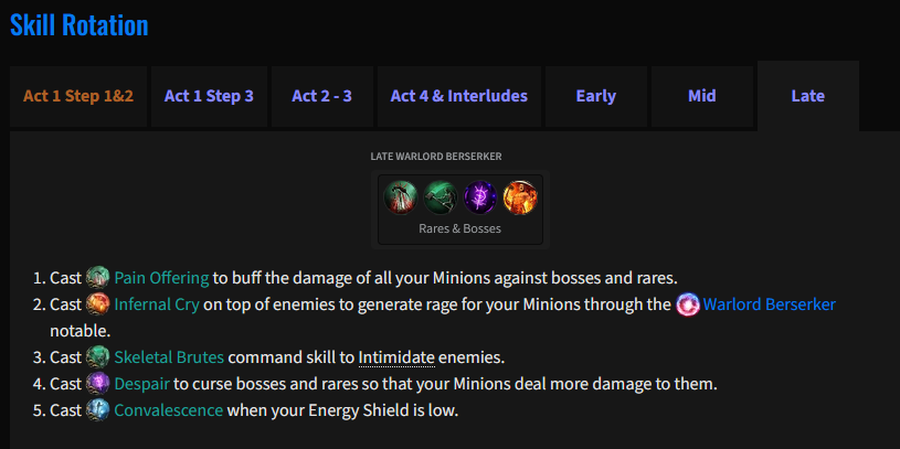 >Cast Infernal Cry on top of enemies to generate rage for your Minions through the Warlord Berserker notable.Nowhere can I find what this means. The idea is that I gain rage from my ascendancy, and each % rage gives minions % damage/atk spd. So then what does this mean when my rotation says I need to "generate rage for my minions". Does rage do something else for minions? They get the buffs just from my rage being maxed out so what is this 2nd part they talking about?