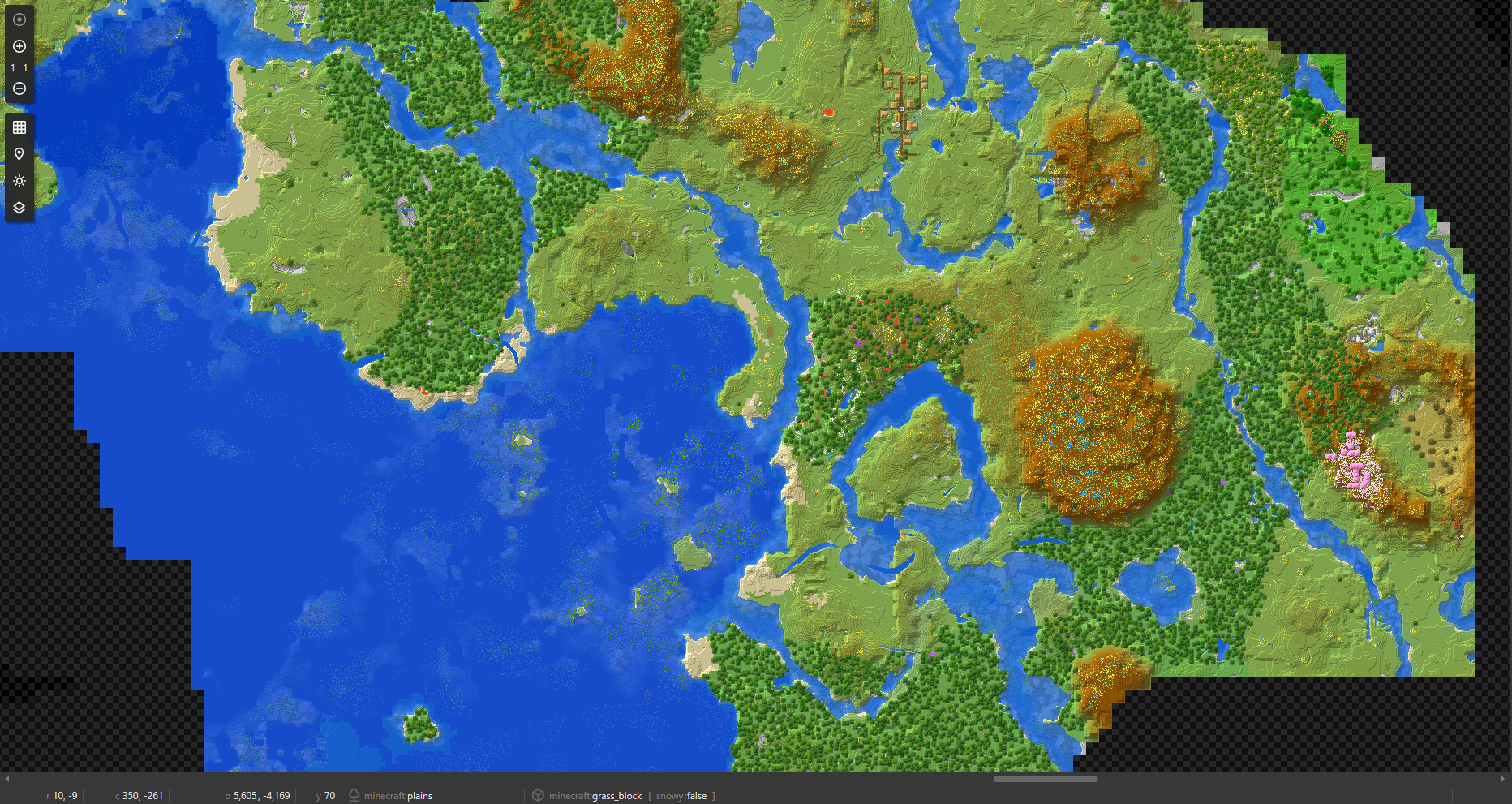 Found this cool looking peninsula while exploring west-facing coastlines. I have been playing in my world for 1 year and I plan to keep it forever, my main base/city is like a 30s nether trip in elytra away from this spot, and I want to make this spot my second area of expansion.My first city is in a nice river valley, surrounded by hills, and traversed by a river, but it's too far from the ocean, and I feel kind of too imprisoned, and sometimes I crave to look at the ocean at sunset, that's why I want to develop a second city.I think every good area must have a good mix of water features (lakes, rivers, ocean), some variation in heights, and some nice biomes, and no ugly biomes too nearby (swamp, stony shores etc)And this place meets every criterias for me, it's lacking in biomes but meh, you can always import trees so it's fine.(software used is unmined)
