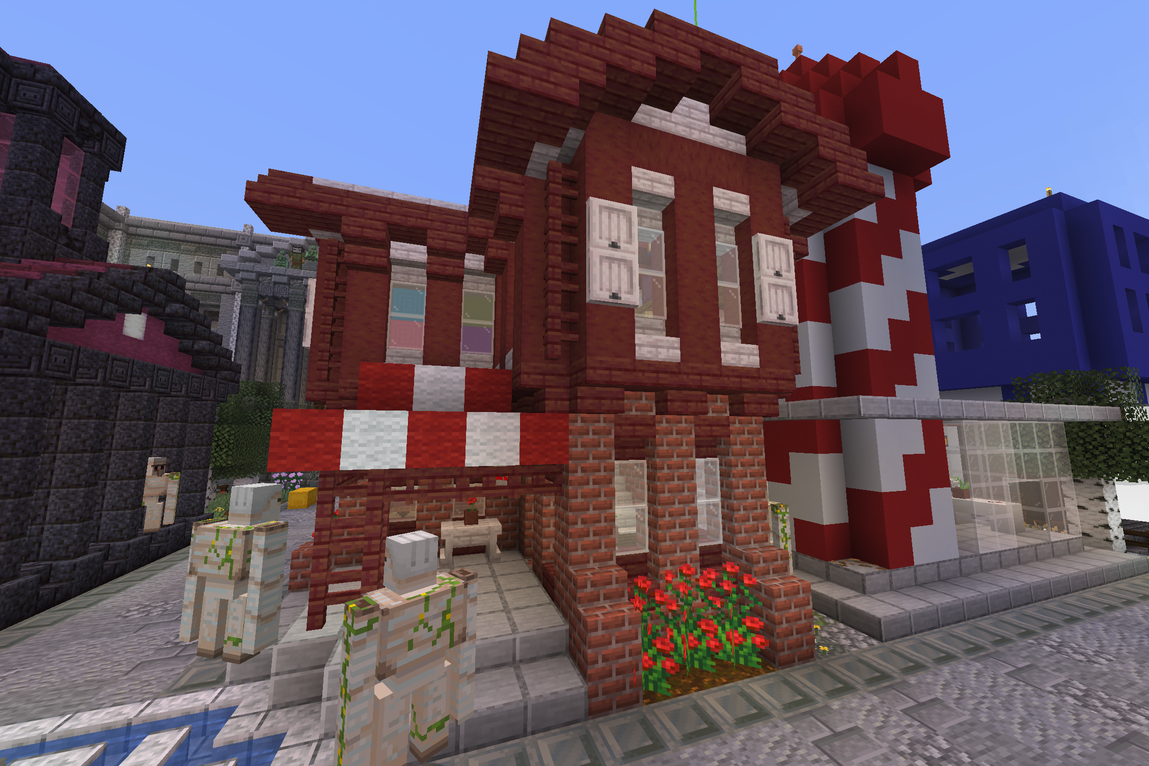 >>558393412This is the backside of the first big item sorter. When I was building it, an iron golem climbed up the scaffolding I had set up and put a poppy on one of the copper golem's head.[6/7]