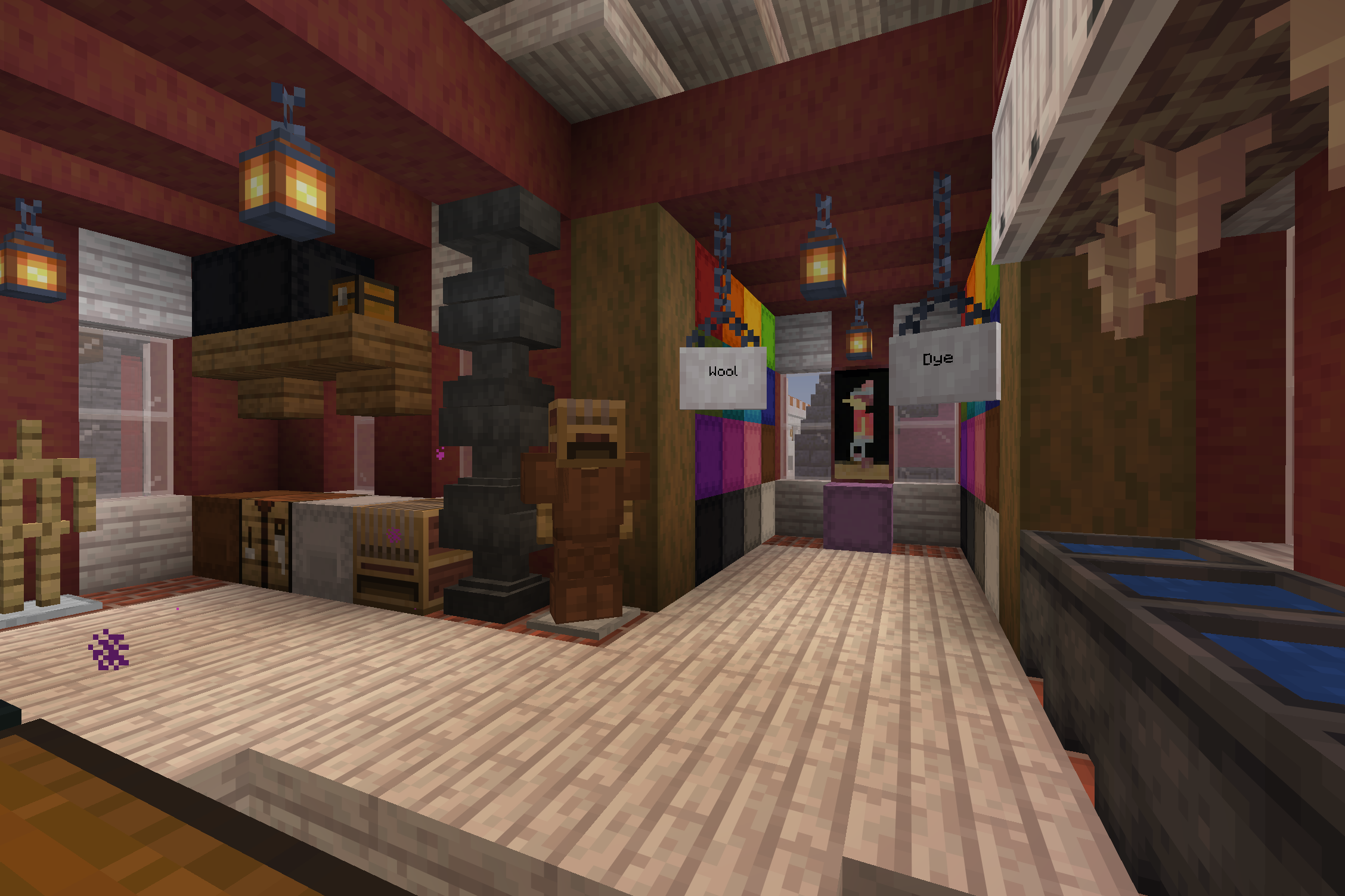 >>558394161And this is the interior. I have two walls of dyed shulker boxes, one for wool and one for dye. I also have some automatically re-filling cauldrons for removing layers from banners.[2/2]