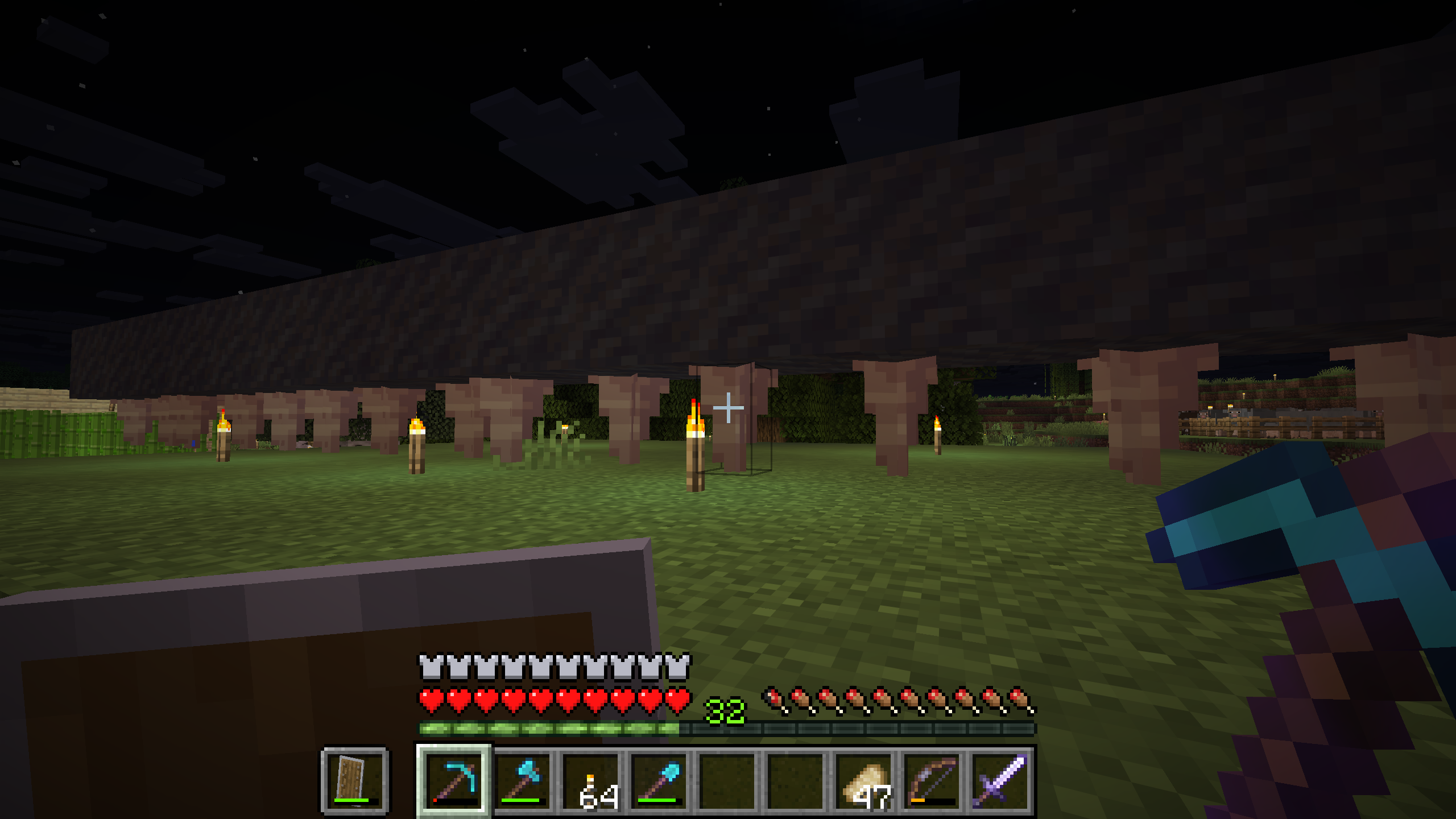 >>558500917I was always restarting because of changes to worldgen, or wanting to try different mods, and I was never really into building, I'd always just have a wooden shack at the start of the game, then tunnel down and dig out a cave underneath to put everything.The idea of having a world where I did build big stuff and would transform it over years seemed appealing, so I made one - but it was on an old version with all the old mods I used to play with, and I quickly beat the game and all the mods and got bored, so I decided I'd try again but on the latest version, and so I have. This world I'm enjoying a lot more.