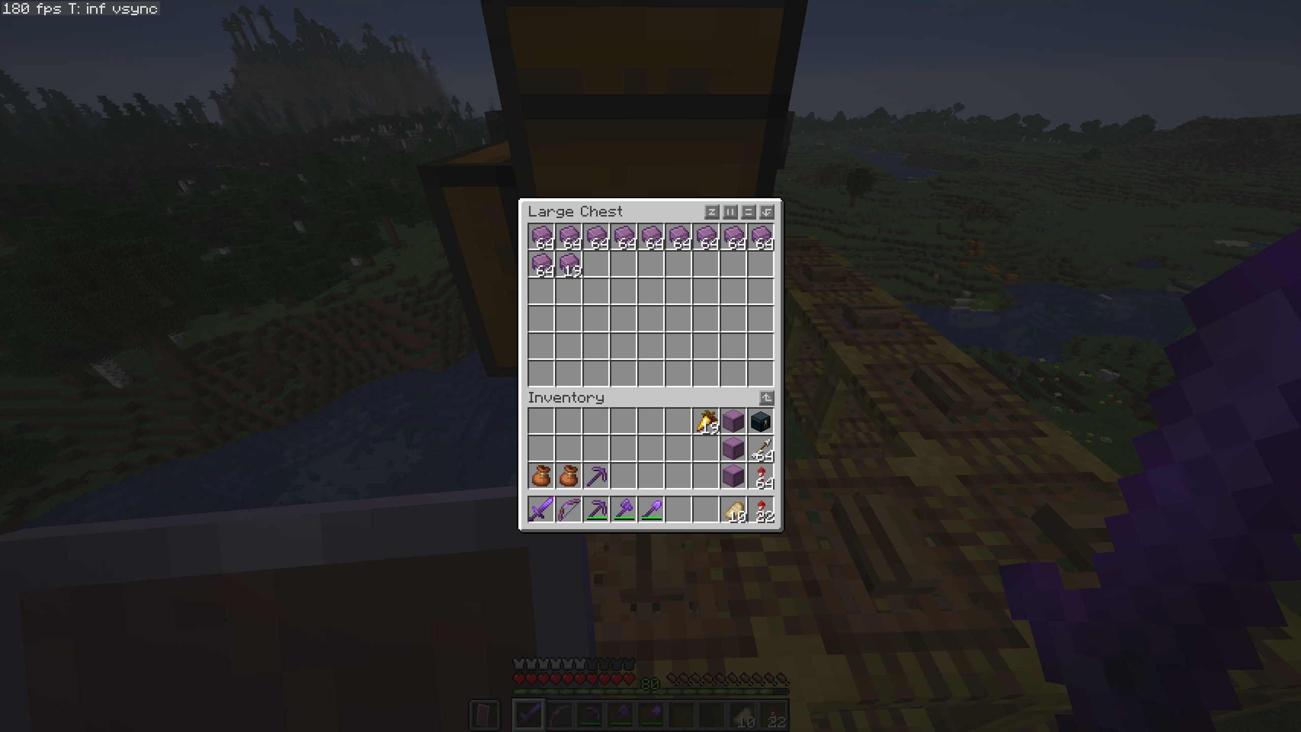 >>558349167I'm very happy about my chest room. at first it was just a big cuboid room below my village, the room was shit, the roof was shit, the floor was shit, and I improved little by little. The floor was very dull at first, but one day I got pissed at it, took the dimensions of my room and spent hours figuring out a glazed terracotta design to that slaps, still happy about it. My ceiling is an abstract mess, idk, it's fine so I've never touched it again.I've installed copper golems behind my rows of chest so I can just dump my items and it eventually gets sorted. It's underground so that I can keep expanding eventually, there's one hidden room behind the staircase, there's also one alcove for rarer blocks on the right that I couldn't present in the shot. On the right side of the upper section above the chest, is a set of doors that open on my lake so that I can just rocket it in and out of this place super easily.