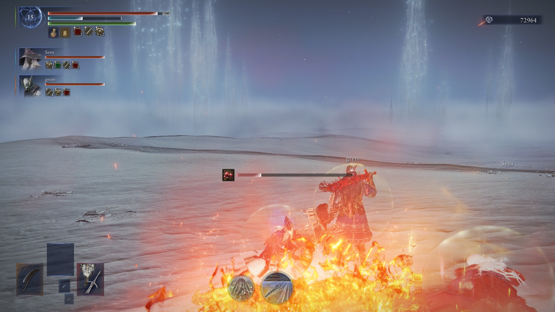 uwah sick twinblade... triple status>>558393346in NR moonlight greatsword is a B strenght weapon not S int and yes they spawn directly behind you so going to the edge of the arena is safest imo
