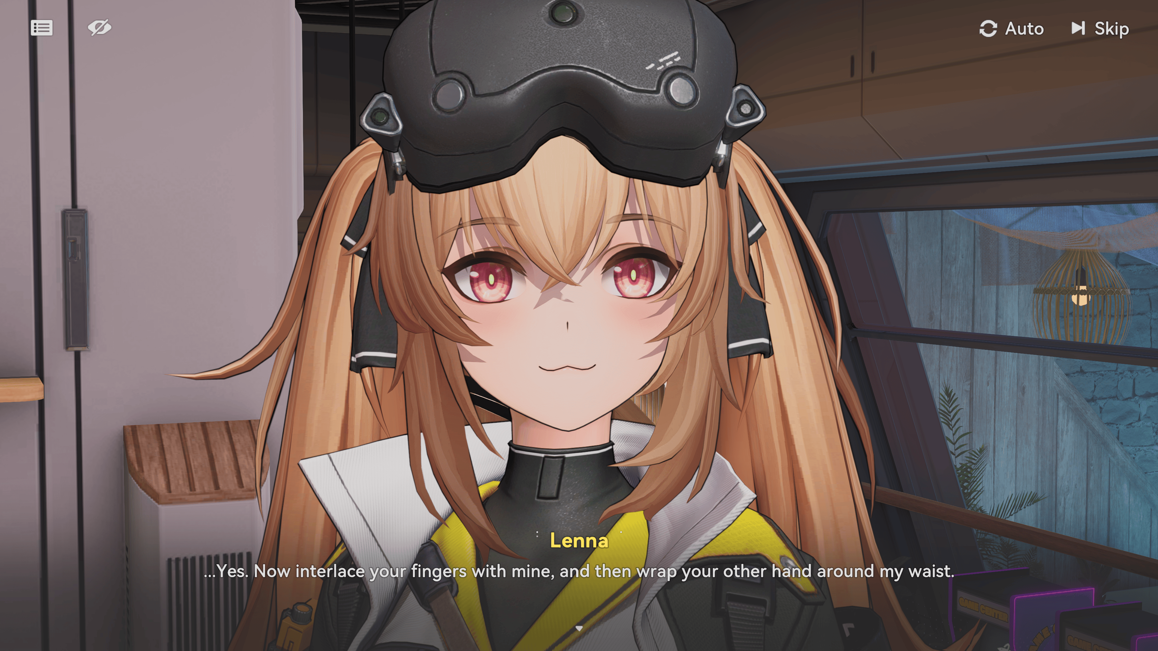 Man, I bought Lenna's new outfit since its cool, but I was kinda hoping in the dorm it would be like Colphne's where its just the skin tight part underneath, but no, she keeps most of it on still...