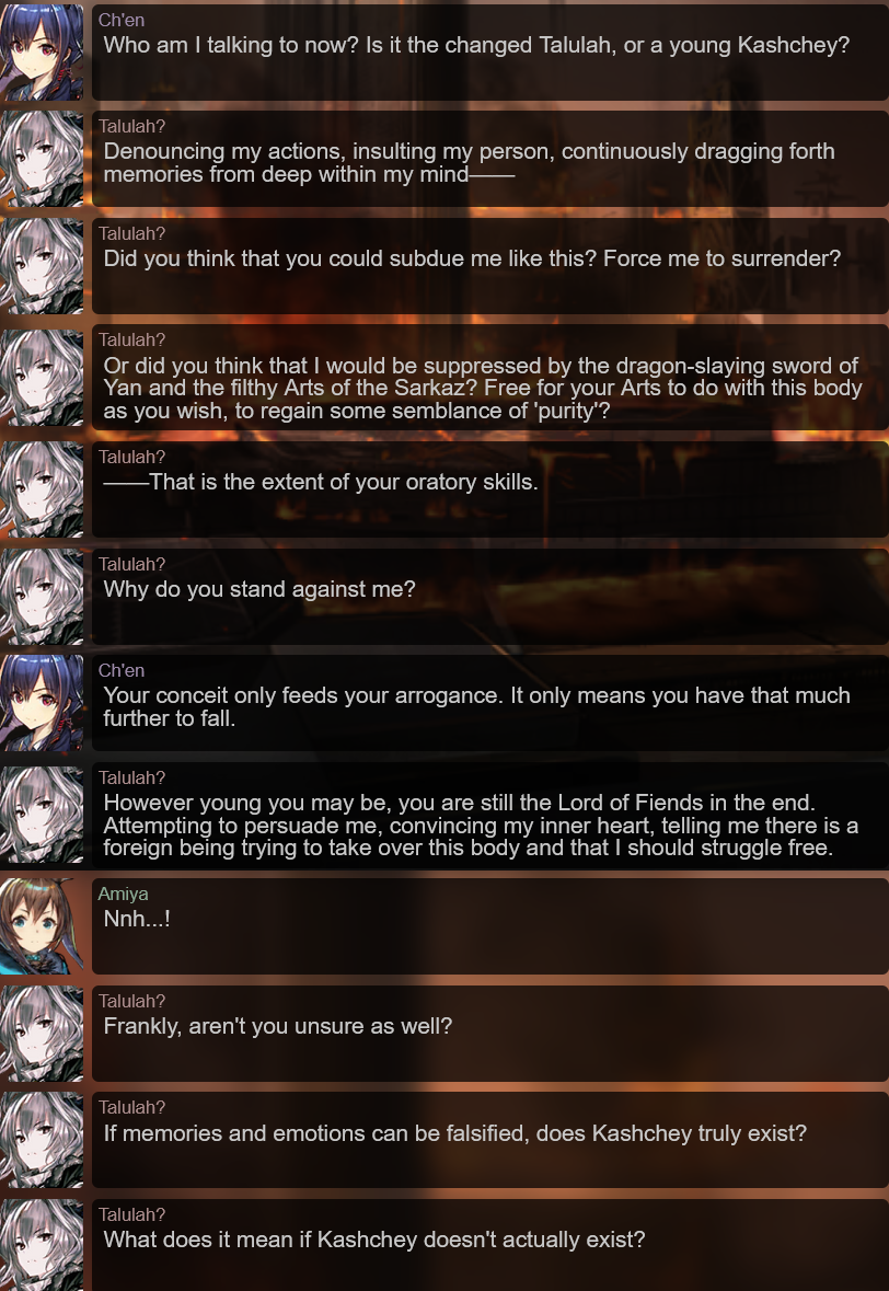 >>558394340(You) never met the DBS and it would make a lot more sense for Talulah to talk about that time and being saved by Ch'en and Amiya.
