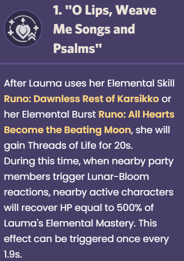 How much does Lauma even heal with her C1?