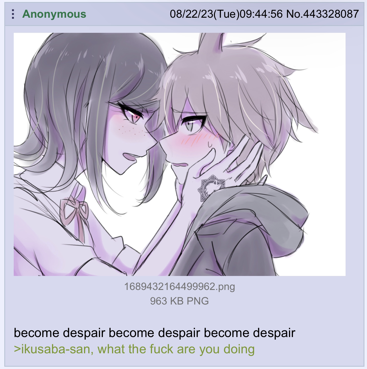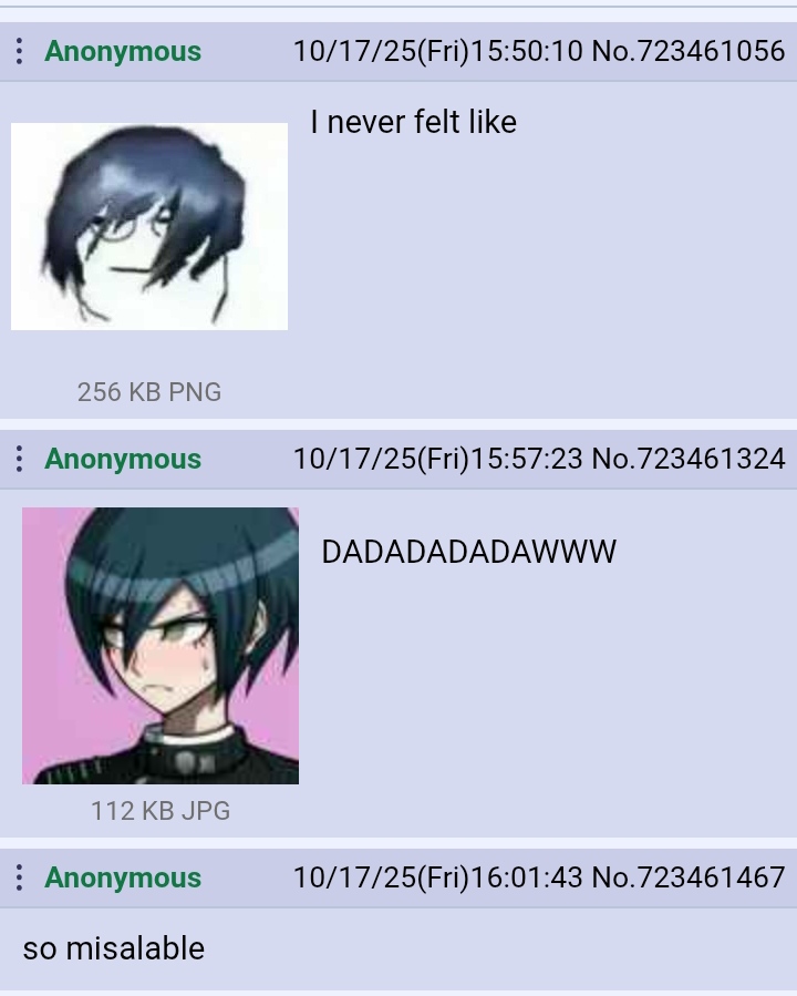 most shocking thing about today is that there was actual sustained discussion of danganronpa in the previous thread for longer than two seconds