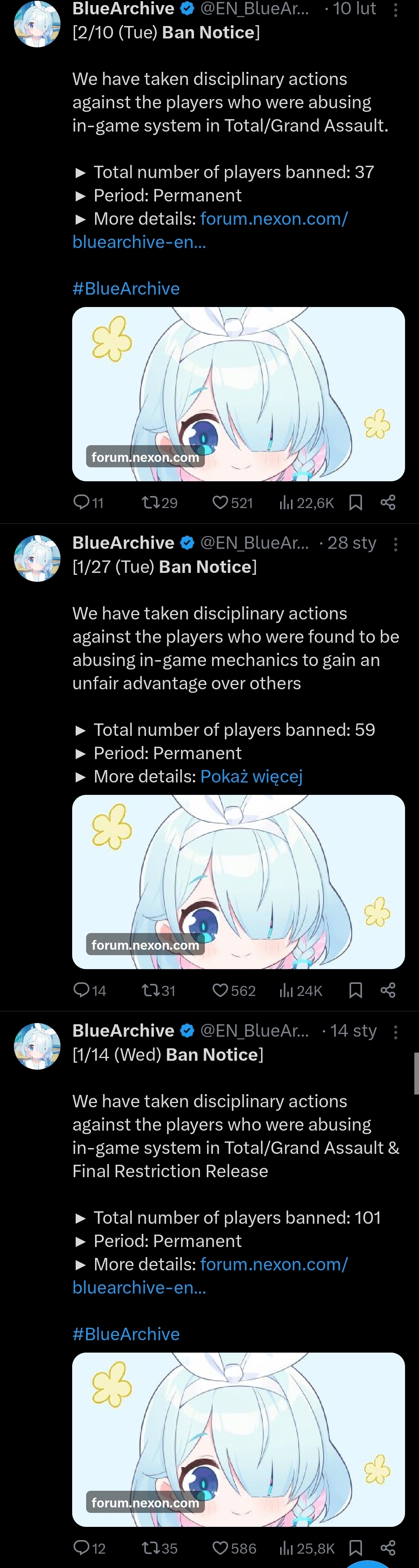 Previous Thread: >>558371573>Guides, Resources and useful links:https://rentry.org/bagguides>/bag/Circles/Clubs/Friends:https://rentry.org/holdingthebag>4koma, Manga, Side Content, PVs & Shortshttps://rentry.org/bacontent>>(JP) – JST>Banners:>2/12 After Maint – 2/25 10:59Yuzu (Battle)Eimi (Battle)>News:Patch notes: https://bluearchive.jp/news/newsJump/634>Events:Game Development Department Cleanup Mission! – 2/18 11:00 – 3/4 10:59Valentine's Day Promise – 2/18 11:00 – 3/4 10:59>Content:Total Assault: Binah (Field) – 2/18 11:00 – 2/25 3:59Limit Break Assault: The Fury of Set (Field – w/Special Armor) – 2/13 11:00 – 3/18 3:592x Commissions – 2/25 4:00 – 3/4 3:592x Account EXP – 2/28 4:00 – 3/1 3:592x Lesson/Scrimmage – 3/4 4:00 – 3/11 3:592x Hard – 3/11 4:00 – 3/18 3:59>>(GLOBAL) – UTC>Banners:>2/24 After Maint – 3/3 1:59RitsuShigureMiyu>News:Patch notes: https://forum.nexon.com/bluearchive-en/board_view?thread=3374459>Events:To Whom Art Belongs: The Fate of Forgeries and Aesthetics – 2/10 After Maint – 3/3 1:59Search for the Hidden Seeds!: https://bluearchive.nexon.com/events/2026/02/wildhunt – 2/10 After Maint – 3/2 18:59The Arius District's Emergency Class Mission – 2/3 2:00 – 3/10 1:59Balancing Schale's Books with the General Student Council – 3/3 2:00 – 3/10 18:59My Office: https://bluearchive.nexon.com/user/myoffice>Content:Joint Firing Drill (Defense) – 1/24 After Maint – 3/2 18:59Grand Assault: ShiroKuro (Indoor – Torment w/Light & Elastic Armor) – 3/3 2:00 – 3/9 18:59Limit Break Assault: The Fury of Set (Field – w/Special Armor) – 2/11 2:00 – 3/9 18:592x Lesson/Hard – 2/23 19:00 – 3/2 18:592x Account EXP – 2/27 19:00 – 3/1 18:592x Commissions – 3/2 19:00 – 3/9 18:59