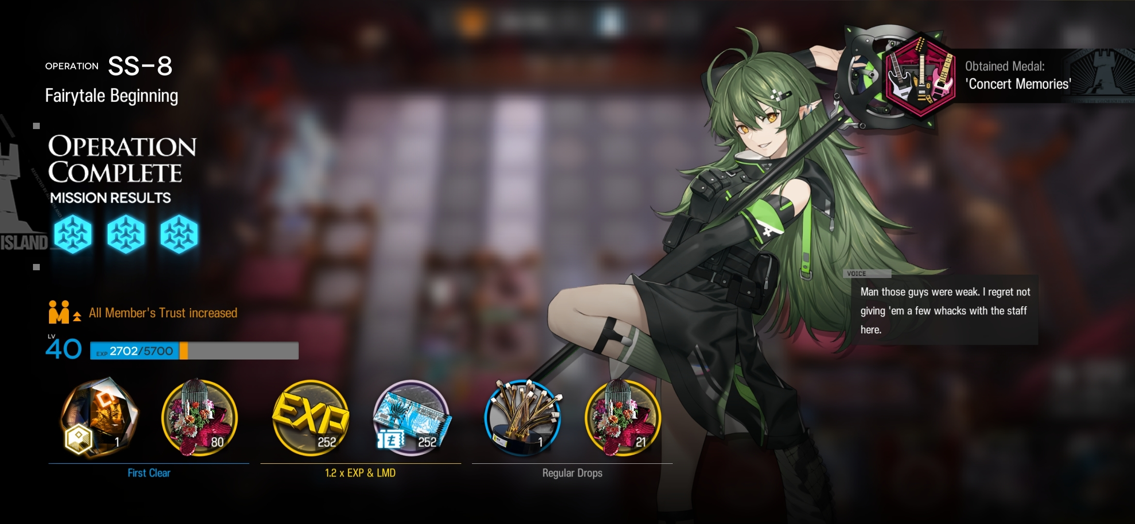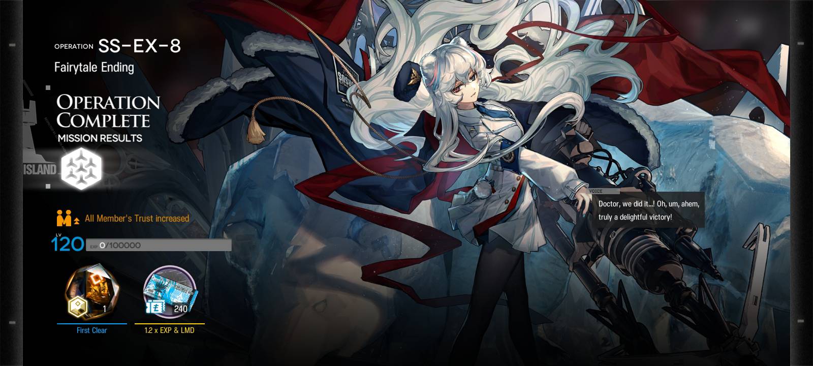 Yep, that was the end of chapter 9. Not a bad chapter, though I can see why some people were disappointed with it especially given the extreme wait between 8 and 9. Outcast was great, Saileach and Horn were good, for the most part the Dublinn folks were solid though the six faceless elite mooks were absolutely laughable. I'm interested in seeing where this story goes from here.For my next 4*, well, looks like guardknights continues. I really don't need another laneholder especially just after getting Humus, but, at least Utage's one I already have at E2 so I get to save some resources on her. If I focus on her S2 I can use her as a helidrop and that's something I am a bit lacking on so it's not a terrible addition. By god I need a fucking defender at some point though, seriously it's getting a little desperate now.