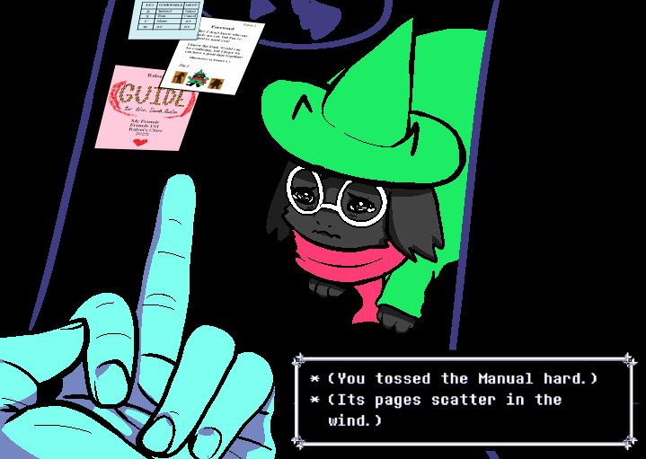 Bergentrückung EditionPrevious King Under the Mountain: >>558317001 Spoilers ahead, proceed at your own Frisk.-DELTARUNE CHAPTER 1-4>https://store.steampowered.com/app/1671210/DELTARUNE/-The Old Game>https://undertale.com-The Old Game's Demo>https://undertale.com/demo-The New Game>https://deltarune.com-The New Game's Progress>https://toby.fangamer.com/newsletters/winter2025/>https://toby.fangamer.com/newsletters/>https://deltarune.com/#news>https://www.twitlonger.com/show/n_1sqn3p9-Merch>https://www.fangamer.com/collections/undertale>https://www.fangamer.com/collections/deltarune-Books-Undertale Artbook>https://pastebin.com/1MRmU0Gk-Legends of Localization - Undertale>https://pastebin.com/DkZaXMpi-Extra Content>https://undertaleqa.tumblr.com>https://undertale.com/alarmclock>https://deltarune.com/sweepstakes/>https://toby.fangamer.com/newsletters/-Undertale/Deltarune Text Dumps & Screenshots>https://pastebin.com/WG9u1fvH-Undertale Image Collections>https://pastebin.com/g2JqH6Ba-Booru>https://utg.vidya.pics/-Recommendbin>https://pastebin.com/fsqd5Sa6-Writebins>Current: https://docs.google.com/document/d/1ZaYVvltQ_Rmf-ggszf1bwmYDW2NUcfpTYU7JzfyMhVE>Old: https://writebin.surge.sh-Comicbin>https://pastebin.com/UJpBYSEE-Fangamebin>https://archive.is/iSiFg-/vg/ League team>https://implyingrigged.info/wiki//utg/-Wanna change the font?>https://rentry.org/utg-font-Current whiteboard: https://r9.whiteboardfox.com/95814010-7629-0148-Previous whiteboard: https://r9.whiteboardfox.com/95802159-6360-6596-Current Magma: https://magma.com/d/3B5chWd0Vh-Previous Magma: https://magma.com/d/QiFH9rWyRh-WorldOfText: https://ourworldoftext.com/utg-/utg/ gaems>Rudy Wash (Win/Linux): https://www.mediafire.com/file/mka78m1p23d0ww6/Rudy_Wash.zip/file-Pippins Wiki>https://utg-pippins-ocs.neocities.org-Thread Template (make sure to paste the current whiteboard links)>https://pastebin.com/rTN8SxAw