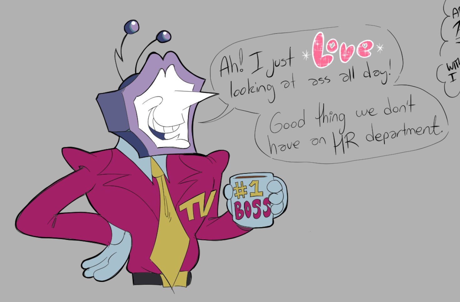 >>558417532the post about rubbing mike's belly gave me brain worms so i had to get them out by drawing that scenario of course!