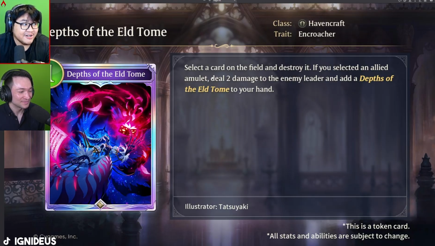 "If you selected an allied amulet, deal 2 damage and add this same card (Depths of eld tome) to hand"