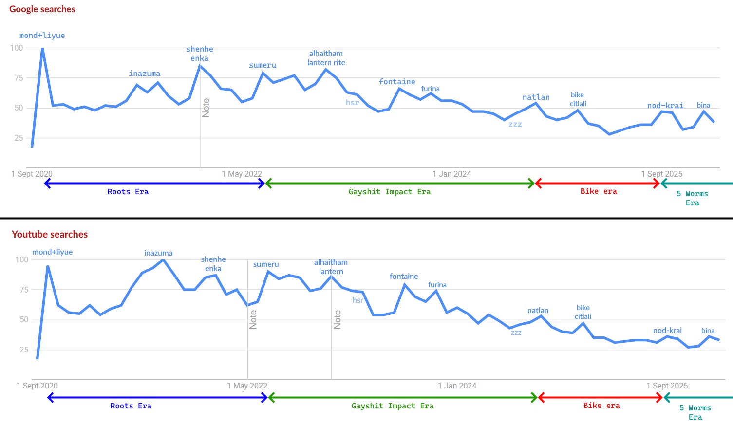 >>558427857I expected the usual 10-15% male penalty of other recent releases and instead got a male that does 40% less damage than Mavuika and Nefer. For those who don't understand percentages, that means Mavuika and Nefer premium teams do 70% more.>Men are never metaNeuvillette was meta for a year, but it didn't matter aside from a few silly platinum icons in combat events. The last limited brick was Sigewinne and before that Chiori. Mizuki is useless in meta too if you count her, so there are plenty of bricked females too. However It's been a few years since a hyped character was a brick - Dehya being the prime example.