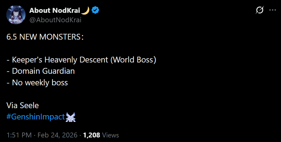 Liu Wei: Genshin Team, what is going on? You are losing share of the market. Come up with something asap or I'm EOSing your game for Varsapura.Fat Xiao: Don't worry my friend. It is time for me to unleash the lore bombs, which I have been edging my fans with for 5 years. Nod-Krai will reveal the moon, space, and our friends in the Character Design Department will make the shades sell.Vivi: Yes, the four shades will make a big impact for us. An Original God Impact even.Aquarius: Finally, I can unleash the Lunar reactions that came to me in a dream when I passed out in Fat Xiao's car. Of course, the new bosses will also require these reactions. This will force our players to roll for new characters, so we do not need to worry about our sales.