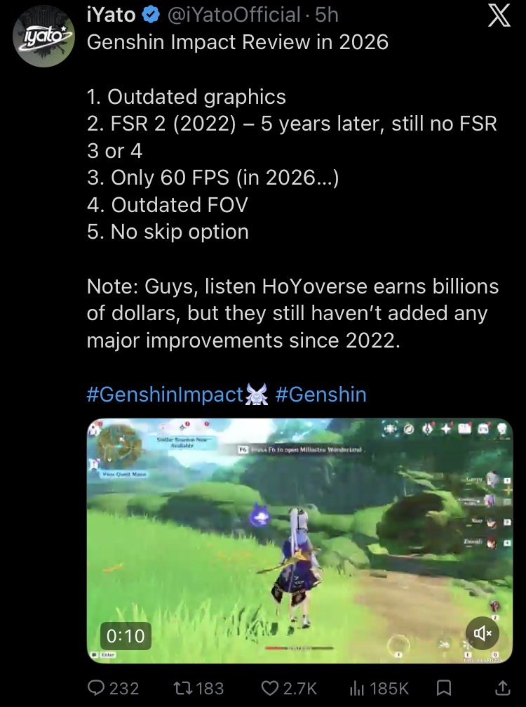 >>558436852He's right, the only fault of his post is that he failed to mention real time render animation, as the biggest offender than technical and game design in genshin impact