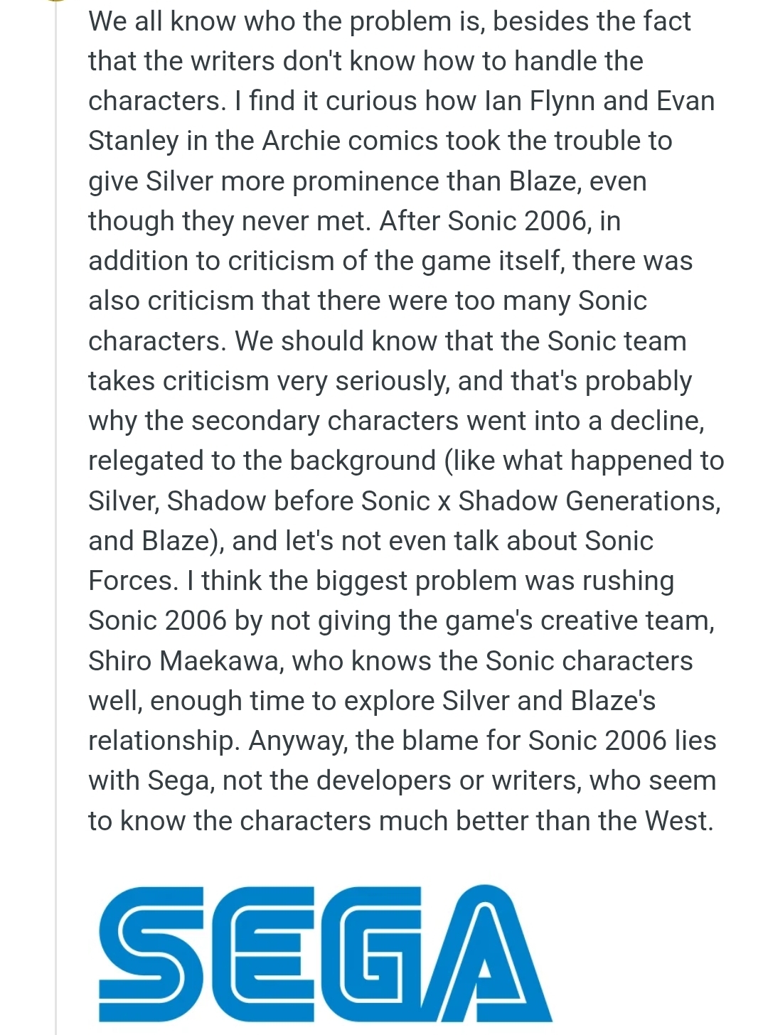 Sonic Team is dead and you are laughing