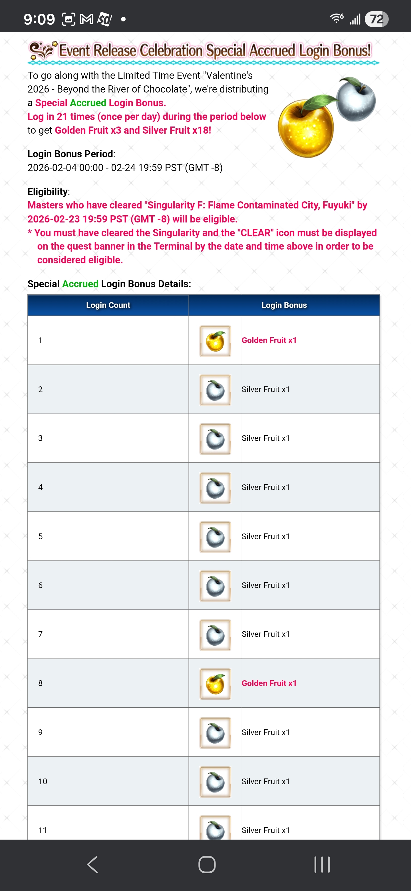 FGO Event Compendium: https://docs.google.com/spreadsheets/d/1qvxLU407QwiFaCvItqR16SqqAVlLD5u5nBzY_bCFYvs/edit#gid=2111060397