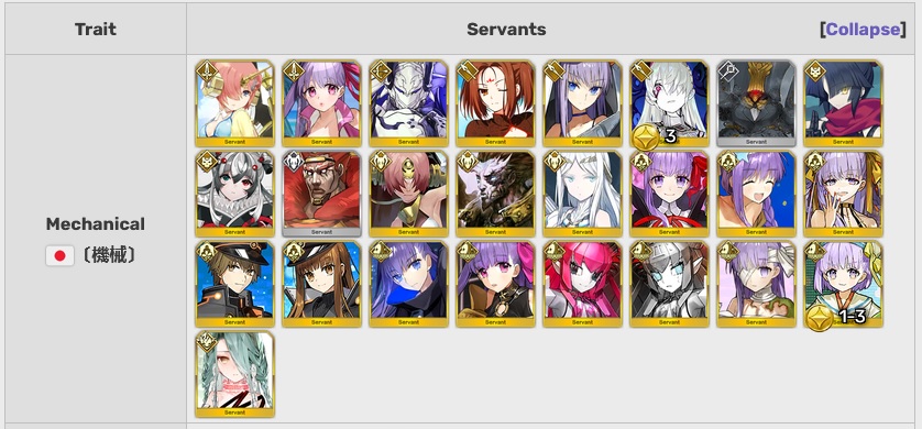 You also left out a few actual mecha Servants.