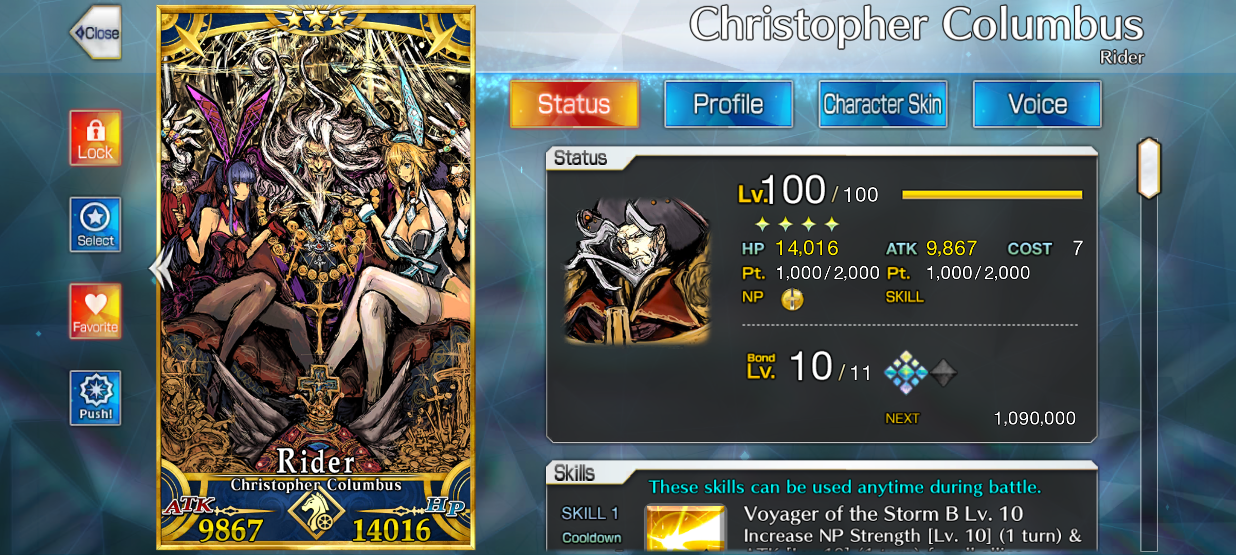 You're not wrong, but I'm taking what I can get. I got my first and only copy during White Day last year, and it took me so much quartz I got Maou Nobu first. Either way, he's going to be my grand and I need plenty of copies, his appends are crucial to him being able to function and I'm making him my grand Rider. Since Columbus can't loop without both mana loading AND the eventual cool down reduction append, I can't just rely on bond levels to get him to where I need him...