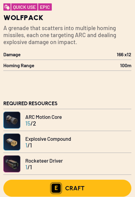 >>558493036wolfpacks are still important for PvP utility. sometimes you get into a long fight during trios and a wolfpack is the only thing that will get a rocketeer off your dick without costing you the fight. other times you win a 3v3 on hospital roof and you need a wolfpack to get a rocketeer off your dick so you can loot the bodies. Killing big arc really quickly keeps you safe.