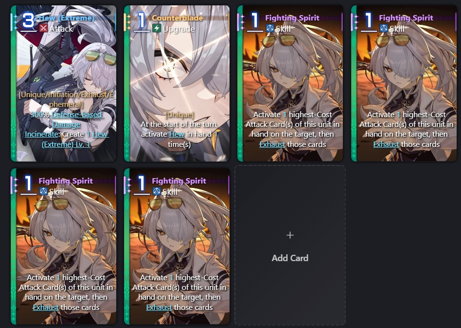 >>558473960You only have 3 AP per turn, anon. Hew costs 3 AP. Not all of her epiphanies cheat Hew out. I have ended up needing to hard cast Hew most of the time. It's not a good card to hard cast.