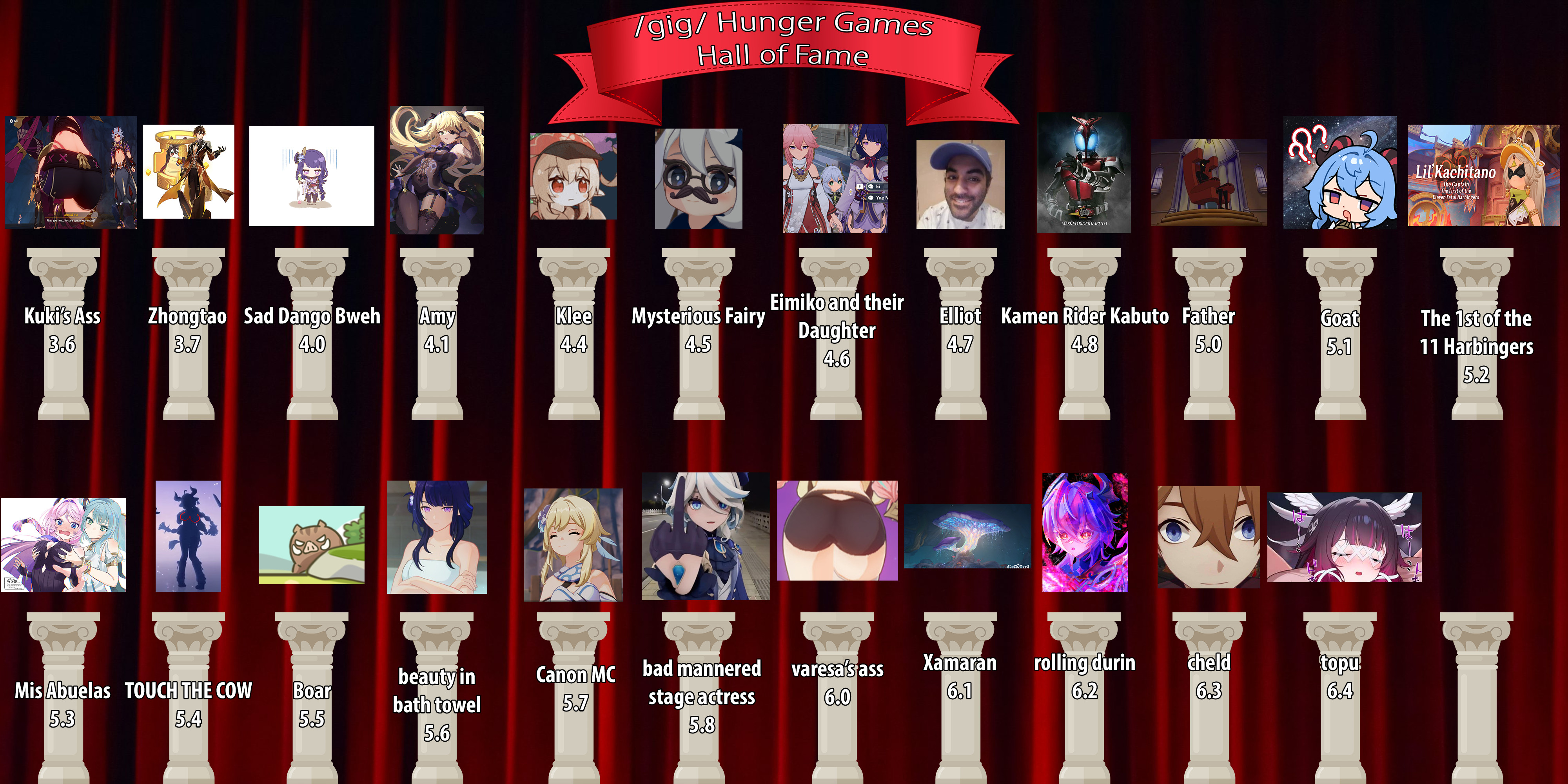 6.4 /gig/ Maintenance Wrestling6-way Ladder Match (Winner challenges Furina for title next patch)Euler vs. Hu Tao vs. Ronova vs. CEO of GEO vs. Cheld vs. UNMATCHEDTornado TagSuperconduct (Raiden & Skork) vs. Mihoyo (Dawei & Fat Xiao)Battle for Nod KraiBina vs. DottoreWho Flopped? Fontaine vs. Natlan WARGAMES(Porkrinde & Chiori & Furina & Shonenvilette) vs. (Varesa & Chasca & ESCAPITANO & The Bike)STARTING SOON:https://rentry.co/gigtubecytu (dοt) be/r/gig
