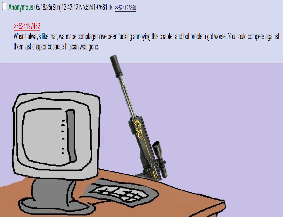 >>558496781>just say u couldn’t aim lol bro*Drops falcon eye sniper* Grim
