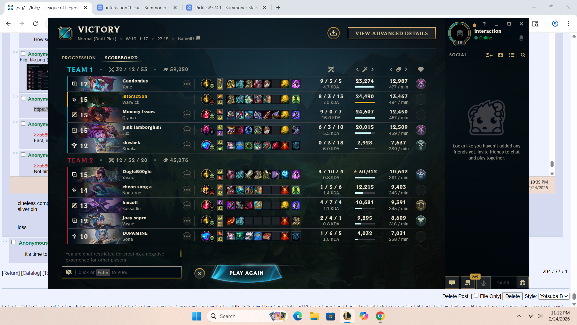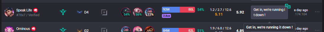 >>558503995>>558504171nah hes full of shit and coping, all the plat 4s on the enemy team are 50% winrate, him being silver is what is dragging the game mmr so low, his team is a silver/golds vs a plat 4 team>emerald/high platplaying with the stucks lol