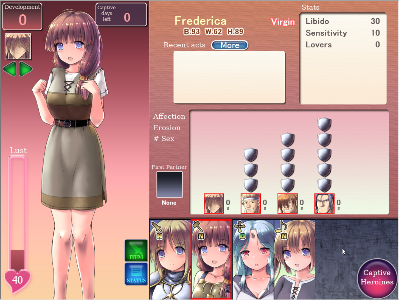 Finished RJ385640. It's really easy to beat. About 10mins for the good ending if you know what you're doing. The idea seems good, but it seems like the game wasn't fleshed out. There are certain triggers to progress the fall of the character, but all of these can be done without having actual sex, outside of a blowjob or few. She blows a guy in a church, then literally wakes up the next day with a lewd crest, fully blackened skin, and virgin title removed (even thought she didn't have sex to our knowledge) with no explanation. Some characters feel like they were supposed to have a purpose like the smoker, or even the guard, but it seems they do nothing.It's a really short game, that seems half-assed, but the boobs and butt were really big so I liked it.