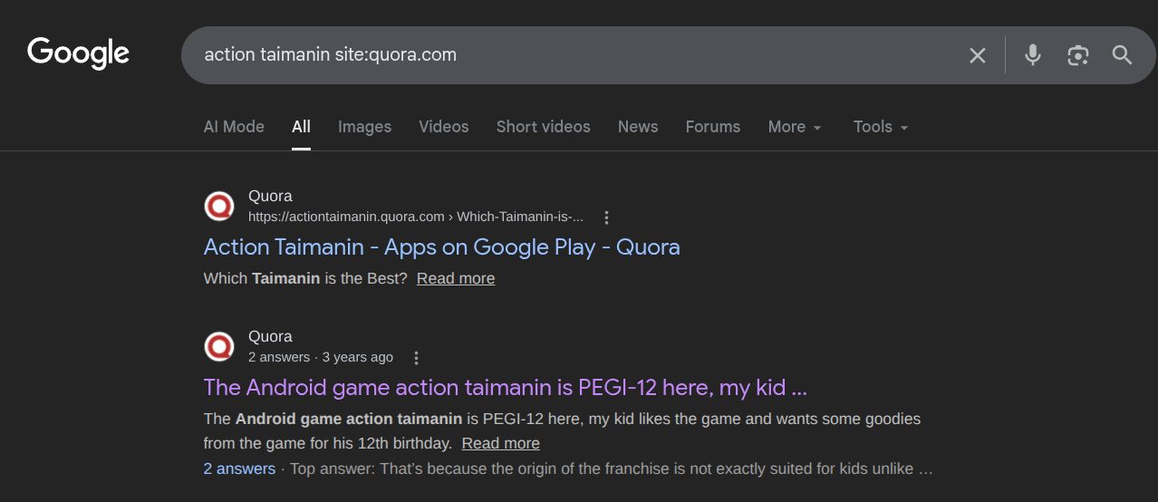 >>558623610>>558623307Well, the post does exist:https://www.quora.com/The-Android-game-action-taimanin-is-PEGI-12-here-my-kid-likes-the-game-and-wants-some-goodies-from-the-game-for-his-12th-birthday-But-every-items-seem-too-inappropriate-on-Amazon-or-aliexpress-what-should-I-do-what