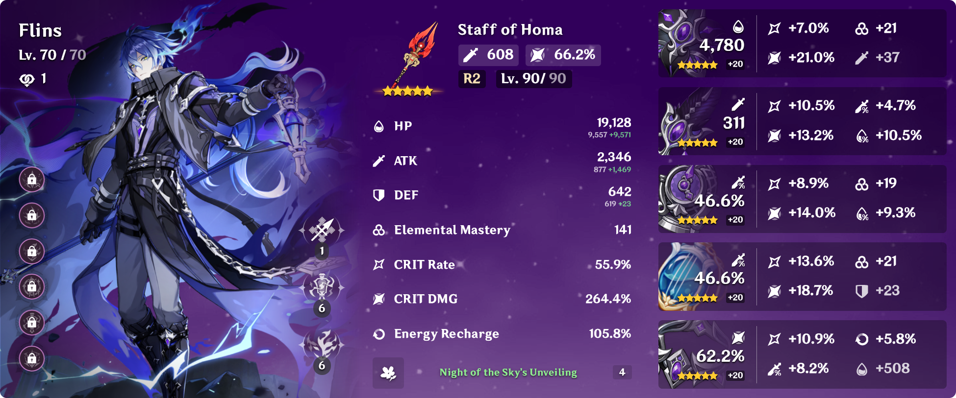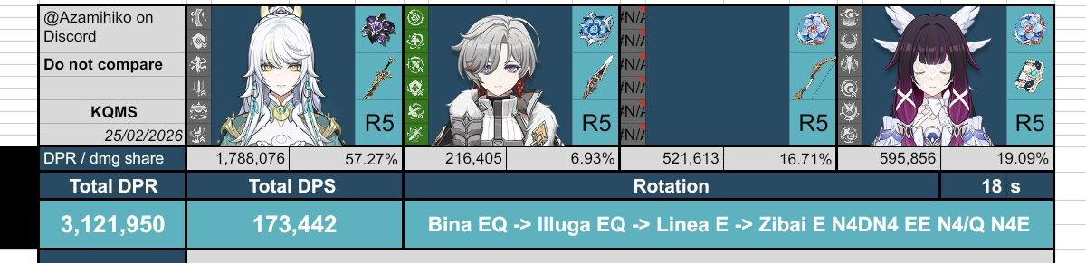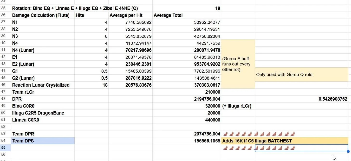 zibai is at 156k dps with c2 illuga and 172k with c6 illuga