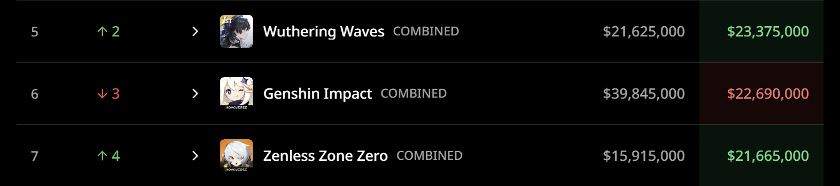 >Genshit: Horislop Zero Calories>HSR: Fatekino>Wuwa: Cyberludo 2077Why did Genshin lose?