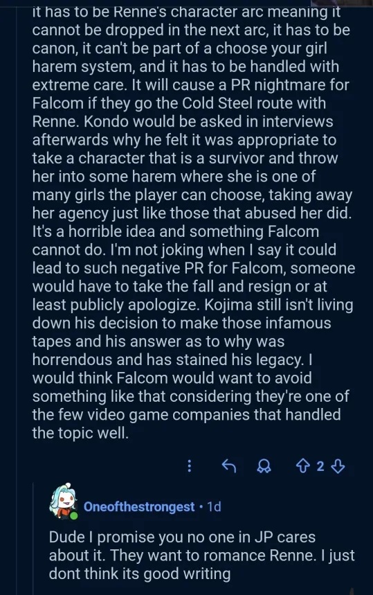 Anons, will making Renne a harem member for Van really be the end for falcom and make Kondom resign? I'm scared.