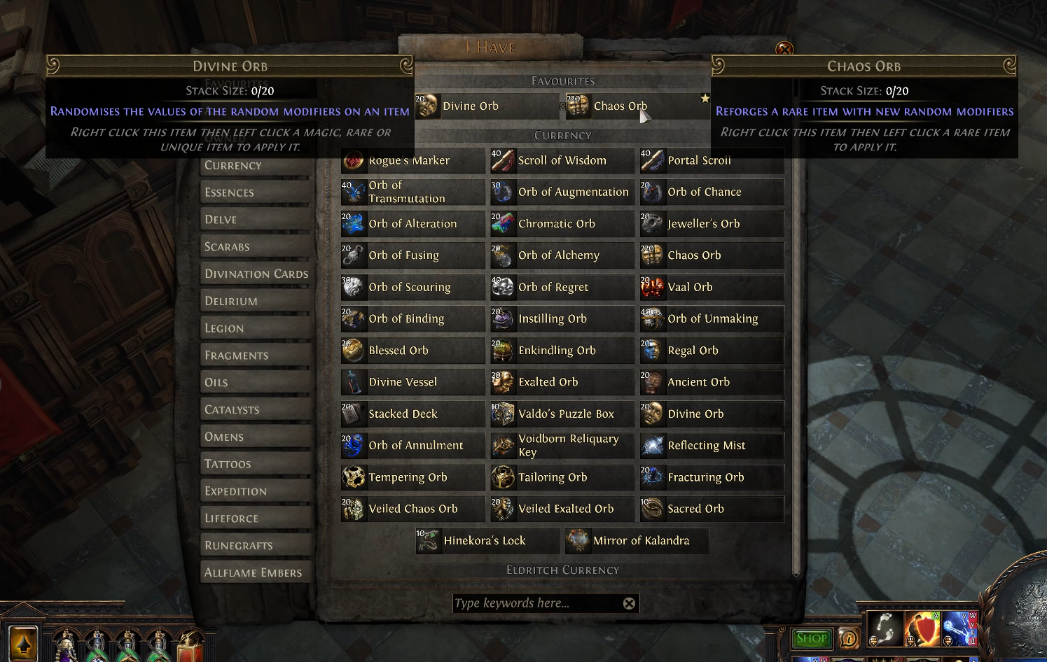 >>558577139Thanks, so basically its a div or ex every 25 chaos, and a sacred every 25 of either, and a mirror every 25 sacreds