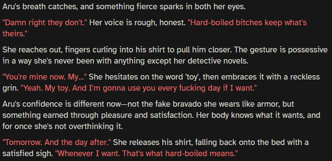 >>558604342>Top really does sound like a quippy redditorAt least you finally agree. I'd take a quippy redditor (Opus 3) over the slop Opus 4.5 does.>>558604308For me it's that I've started doing the deconstructing thing I told AI never to do. It will say some shit and I start typing my response before I've read the whole thing, responding to every little section.
