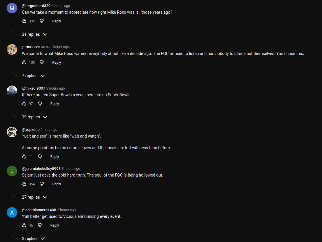 >>558622303>grifter opinions pleasing boomers that wanna live in a circlejerk Yes fighting games should be played only by 200 people and go extinct like mmos did that's a positive mindset from someone that allegedly loves fighting gamesTotally not trying to live in a secret club that is prestigious in my head ( normal people find it meaningless tho and i will never bring it up irl )