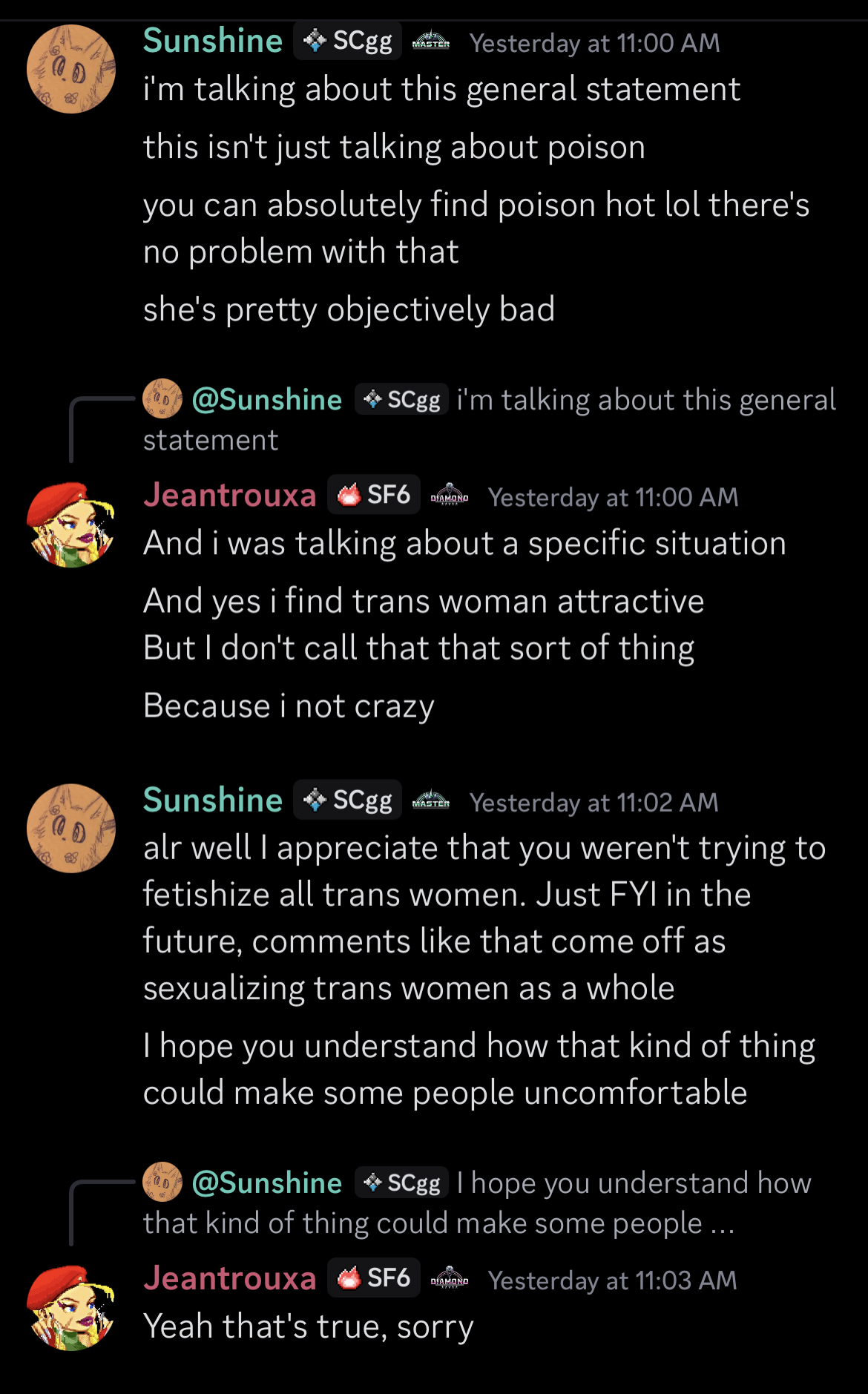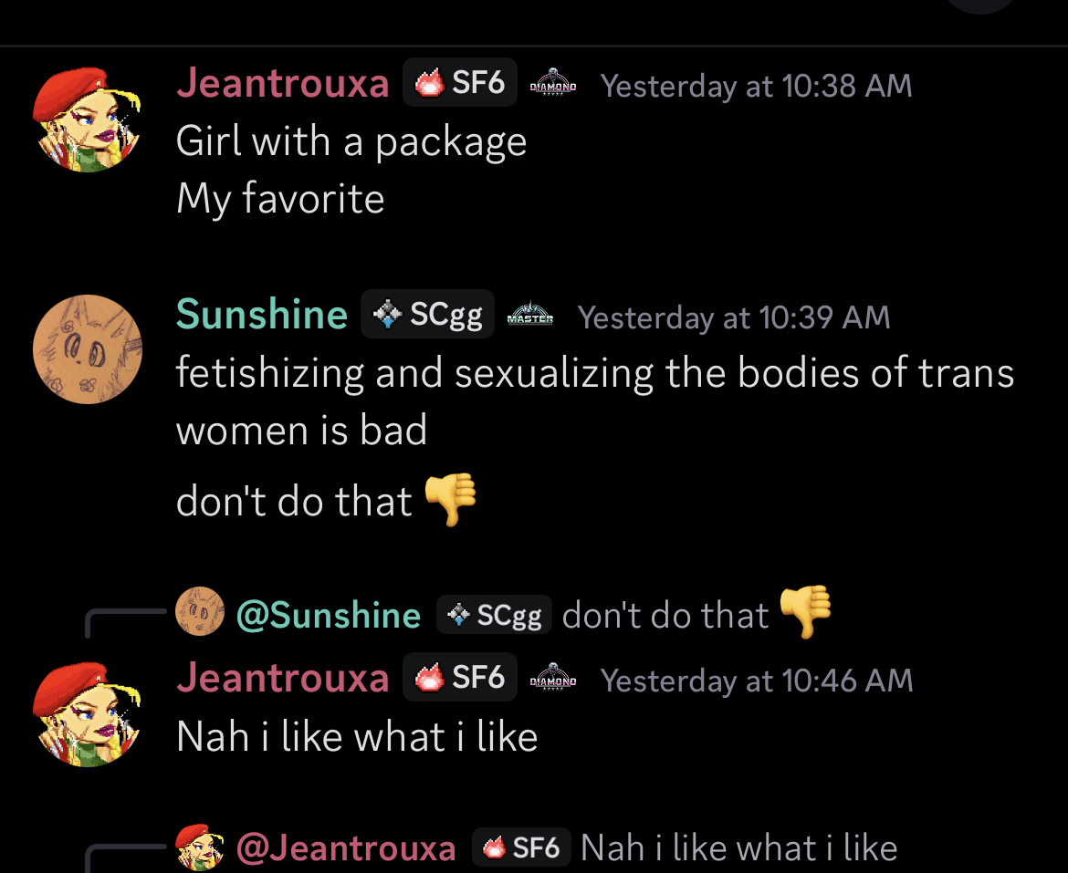 imagine sending your troon gestapo squad to rape a discord of 09er streamboar larpers who dont play sf4 in the first place