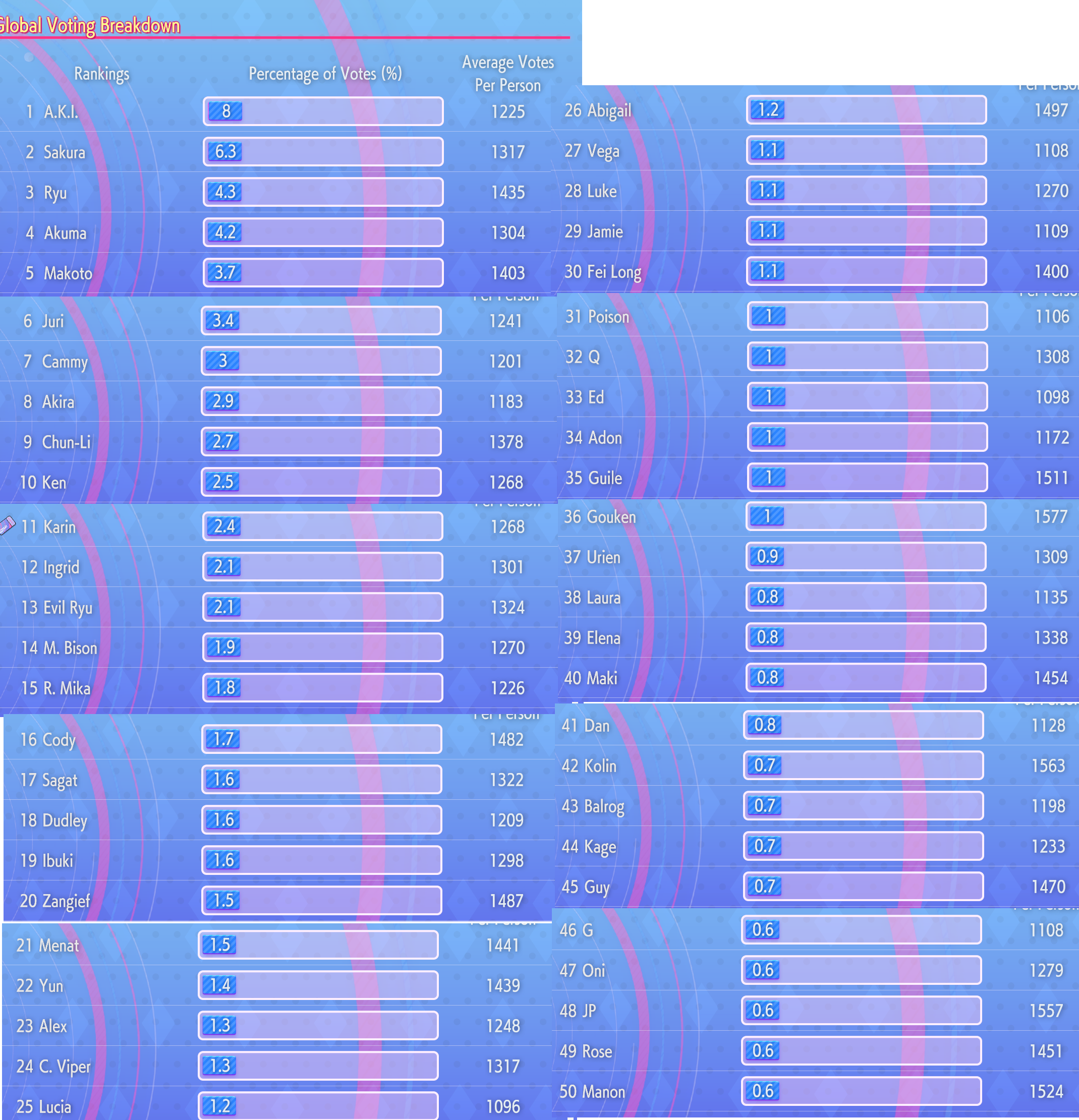 Characters that would unlock their true potential in the RE engine>Poison>Mika>Laura>Morrigan>Blair Dame>Ibuki>Maki>Rose>Tiffany Lords