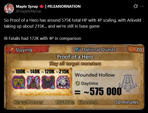 >>558620696All the TUs with 9-10 star quests have insanely inflated HP values and wounds regenerate really fast. It's fucking comical now, because Wilds now has G-rank stats in base game, meaning the game has the largest difficulty spike in any Monster Hunter thus far outside of Frontier.
