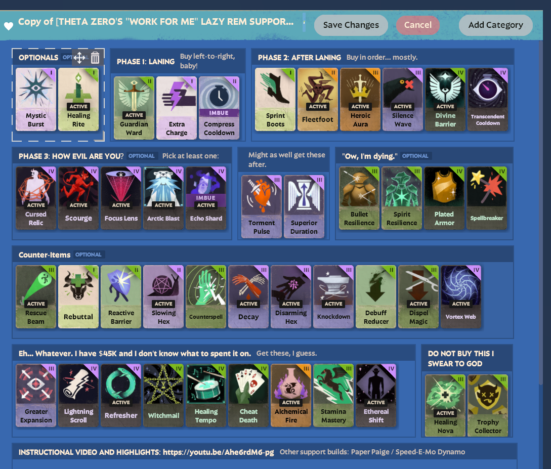 >Collection of useful character builds