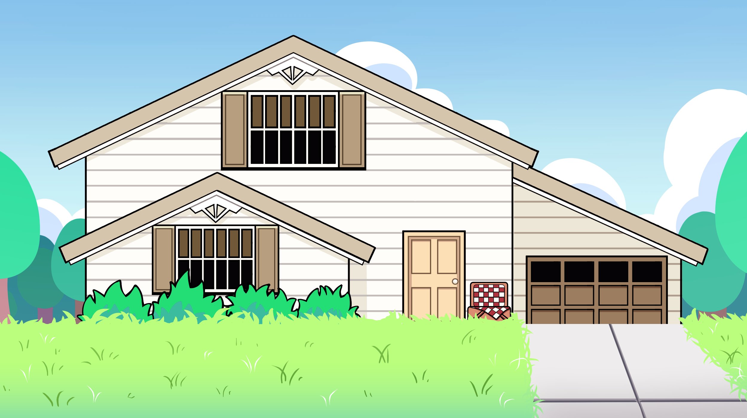If you wanted an idea of what this monstrosity looks like from the outside, here it is. The upper floor rooms are going to have to be expanded and overhang even more since that's not even enough space horizontally for the parents' room, bathroom, AND Sunny and Mari's room.