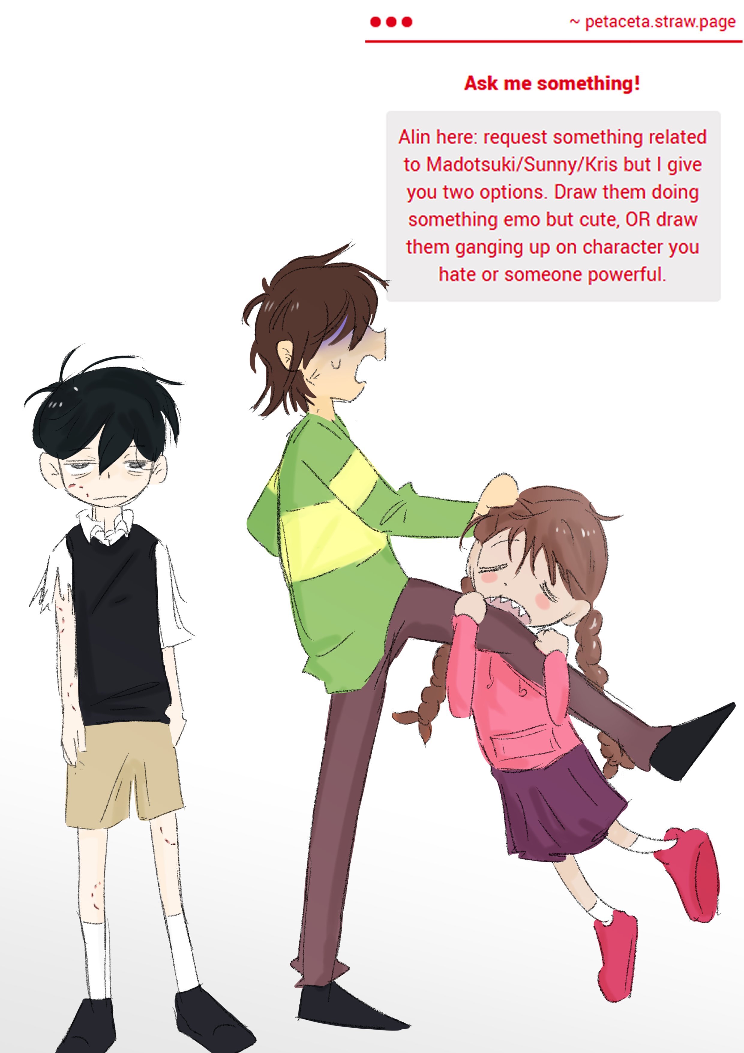 The Coffin of Omor and MariMari edition, Thread #1320Previous thread: >>557895581>Game LinksSteam Editionhttps://store.steampowered.com/app/1150690/OMORI/Physical Edition (And Merch)https://www.omocat-shop.com/collections/omorihttps://www.fangamer.com/collections/omoriDownloadhttps://archive.is/FqpTSThe console editions (Switch, PSN, XBL, PC Gamepass) have some exclusive content.>Character Birthdays | Basil - February 18https://pbs.twimg.com/media/EujUrE5UUAUyxku.jpg:orig>Fangames, Projects, and Etchttps://pastebin.com/XQX7CSip (OMARIO fangame)https://totally-fungal.itch.io/doomori (DOOMORI fangame)https://files.catbox.moe/x1fogc.rar (manga ch.4)https://imgur.com/a/YJb6dTT (beta & prerelease art)https://goats.dev/omori/#KEL (game dialogue dump)https://files.catbox.moe/nxd8dm.png (faraway map)https://files.catbox.moe/3ng1by.torrent (sprite dump)https://postimg.cc/gallery/G4krtVR/13ec9e79 (Omori Official Walkthrough & Guide Art/Developer Interview & Messages)https://rentry.org/756>Modshttps://mods.one/https://files.catbox.moe/6kewkg.torrent (RPG Maker MV 1.6.2)https://rentry.org/vanillasavefilesTry _omariAU, rainy_mari_mod, omorimodreverie, omori_daydream on Twitterhttps://files.catbox.moe/5ddmjn.zip (Console content)>/omog/ Archivehttps://booru.plus/+whitespacehttps://docs.google.com/document/d/1SGf6LRkzuLpou5Neqppl3Tm7c3hPAitFhCTrIPRfC_c/ (anon's Universally Loved day-by-day guide)https://mega.nz/file/zaQXDYyQ#bG0yK3nl-w6hx5u6IOcvn3GUrGDY53X9faa7nfzC0Yk (MEGA archive 2021)https://files.catbox.moe/e5yhbo.png (Whiteboard 2021)https://rentry.org/756352 (OC Fic and Greentext)https://youtu.be/bKNwUnIMjVo [Embed] (/vg/ sings My Time)https://arch.b4k.co/vg/post/482879356 (/vg/ sings Good Morning)https://rentry.org/omogtemplate2023d/ (Thread Template)Also, if you write or draw anything don't be afraid to post it, don't worry about the quality, just post that shit!