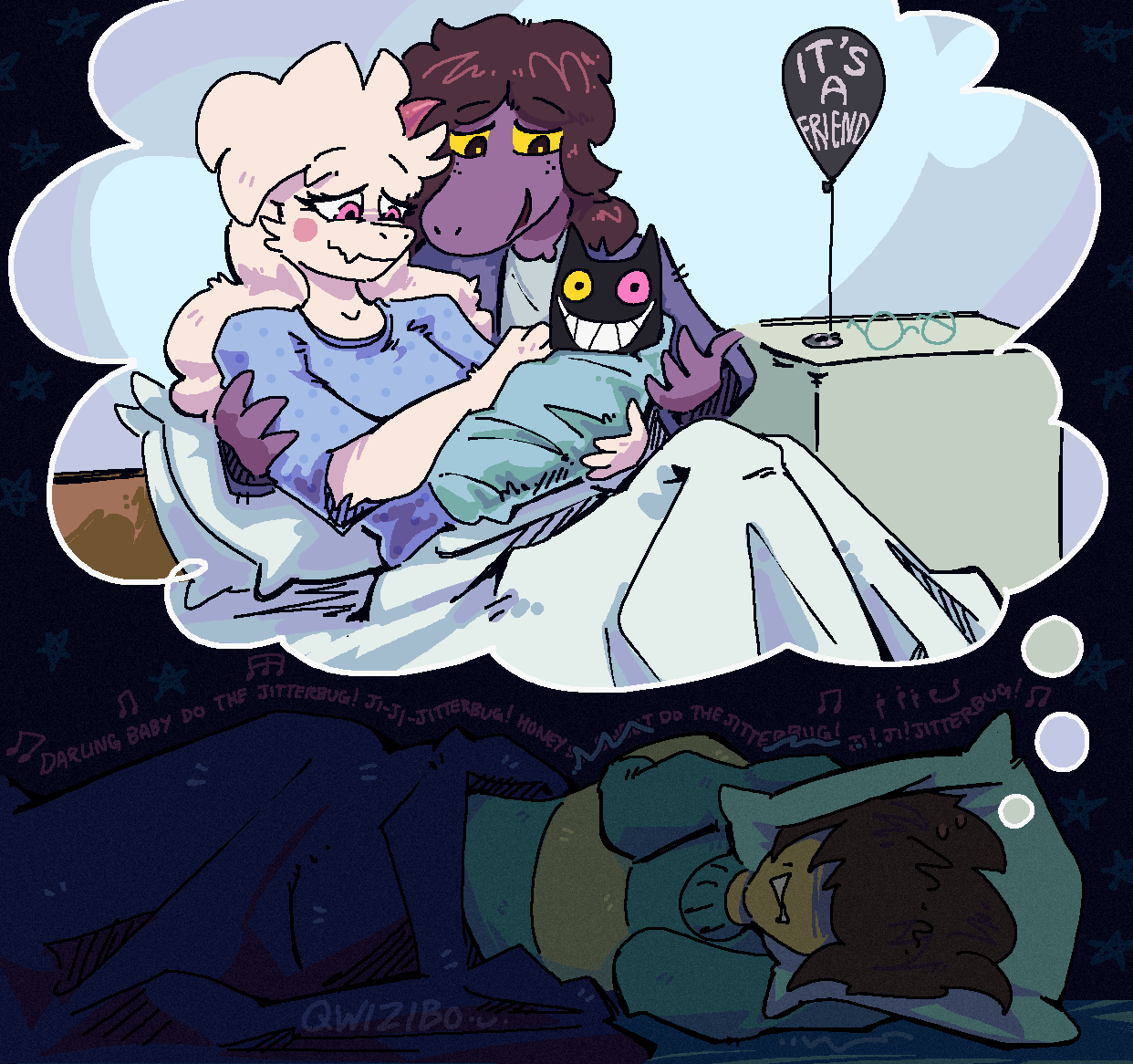 >>558581101I feel like the entire game of Deltarune is kind of about learning what the 3 main characters at least are like at 'full comfort', or 'deep down' or whatever, especially Susie as the main focus. The whole game so far feels like most the non-meta, non-weird aspects of the narrative are pretty focused on her slow journey from Dark Knight/Mean Girl to Paladin/Sweet (but still cool) Girl. Ralsei too, to a lesser extent, a lot of the narrative's about him discovering who he even really is or what he wants to be. There's a lot of theories about him shifting a bit 'meaner/more selfish' as Susie does the opposite but I'm not getting that from him at all so far, maybe 'braver and more confident' which could still lead to him being more of an offensive mage or whatever by the end, but he seems to genuinely sincerely enjoy being a girly cutesy femboy so idk how much that might change.Kris... it's not even about seeing how they are at their most comfortable but seeing how they are at all. I STILL strongly feel the same feeling I've had ever since chapter 1 was new that the 'truest'/ best route will end up being replaying the game after finishing it and learning as much about Kris as possible, in a way that's the most "Kris-like". Though since Toby's so concerned about even the smoothest brain being able to fully enjoy his games I doubt he'll hide the 'best ending' behind this anymore unless the game REALLY holds your hand about it, sadly, when I was hoping it'd be more like a careful, thoughtful replay with maybe small cues and clues on how 'hot or cold' you are as far as earning Kris's trust.Berdly's another simple one, yes he has anxiety but everything so far points to him sincerely being a gamer nerd meme and that's who he really is at 'full comfort' minus pretending to be smart. Though he does seem genuinely brave and caring when things get down to the wire in Chapter 2 though, I'd like to see more of that if we get a chance.
