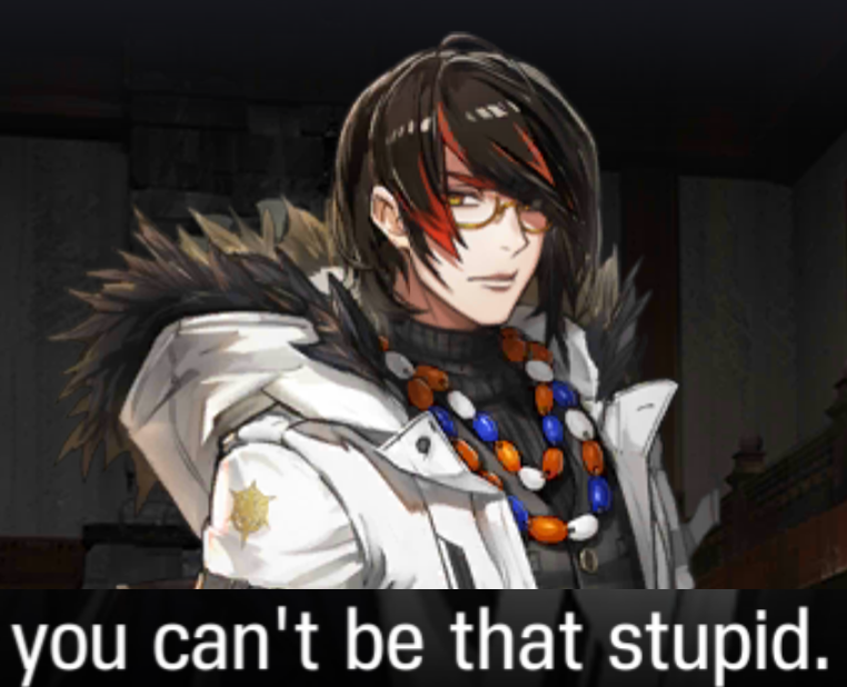 So what exactly was the point of Siege trying to front to Clovisia by claiming she's evil? Is Siege saying Clovisia should have just let the people of Londinium get raped to death by Sarkaz instead of forming the Self Salvation Corps? Not to mention her solution to the noble problem would have succeeded since every time Clovisia was sought to do something she was able to do it every time; meanwhile Siege's solution is to, uh, abdicate the crown and I guess destroy heraldry to own the nobles epic style while the Duke of Caster is still able to stirr shit in Kjerag.