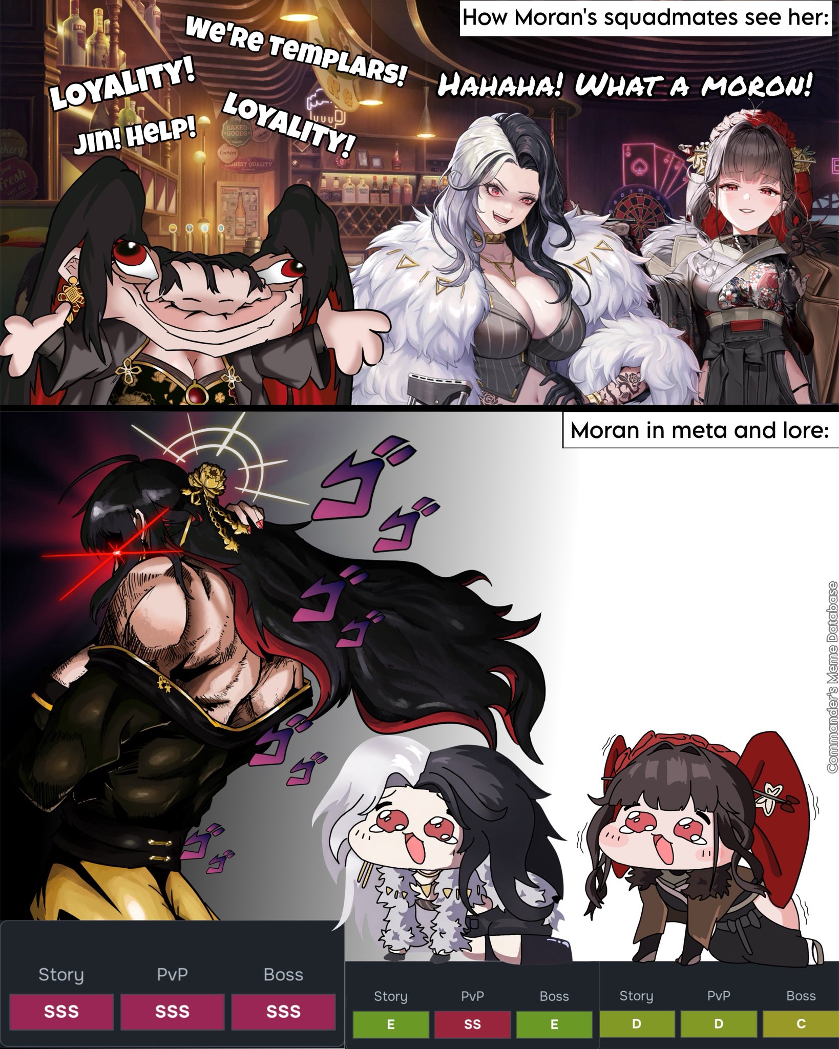 Your normal meta team. Moran does really good damage so you're not losing that much compared to Siren.