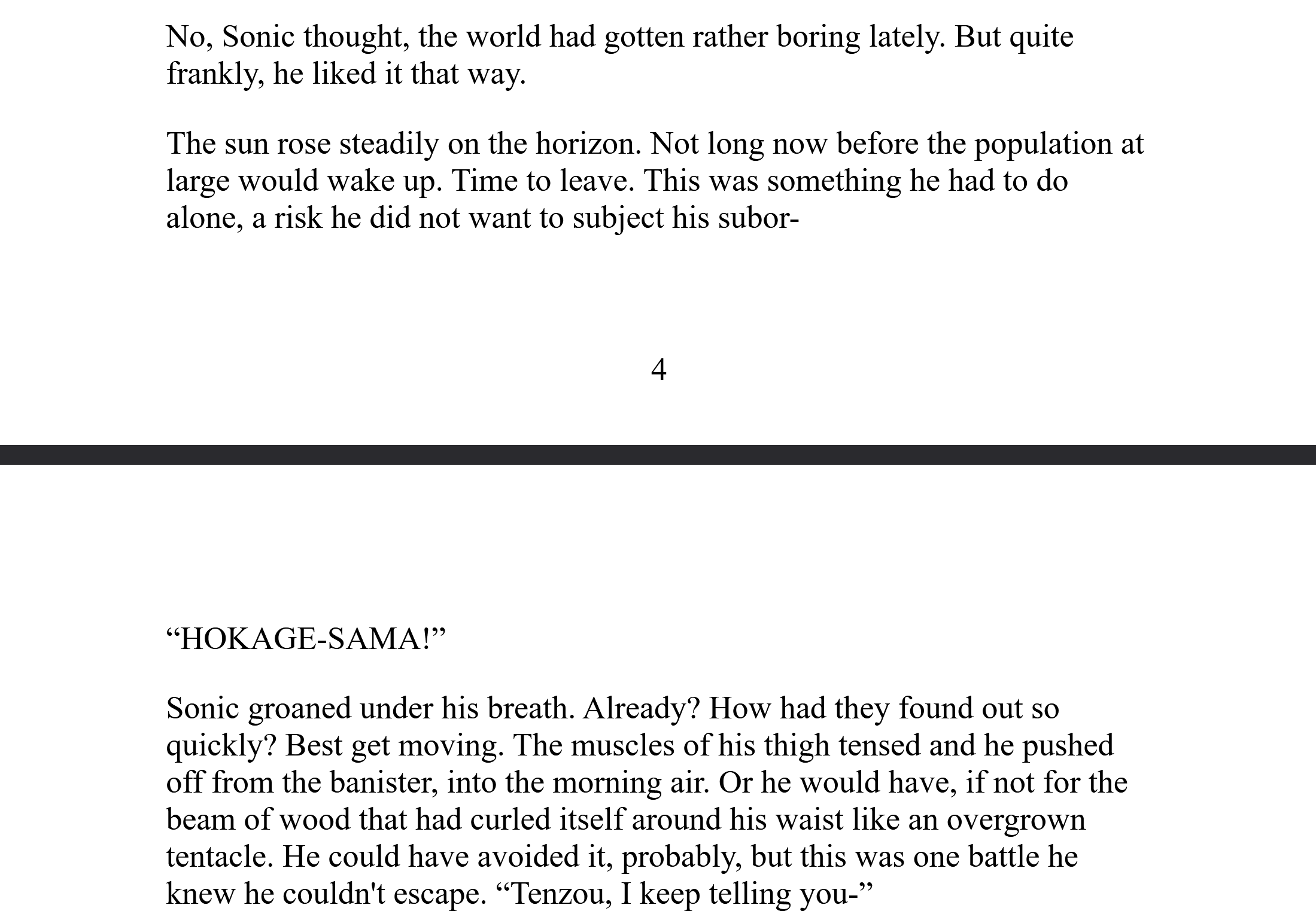 >>558616589>Gonna fire up calibre, download a fanfic, and replace every instance of Kakashi's name with Sonic and see what happens.