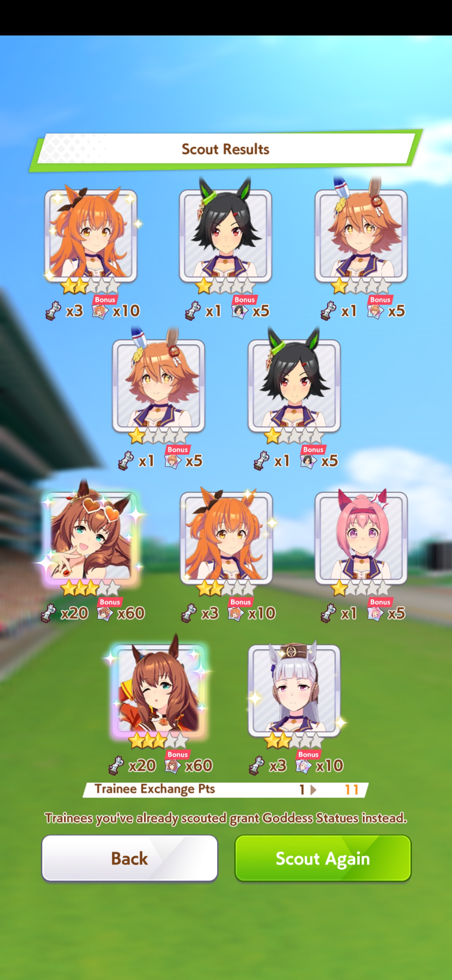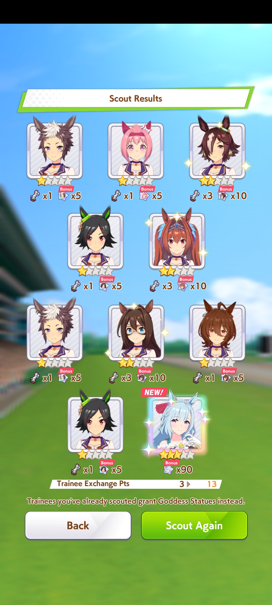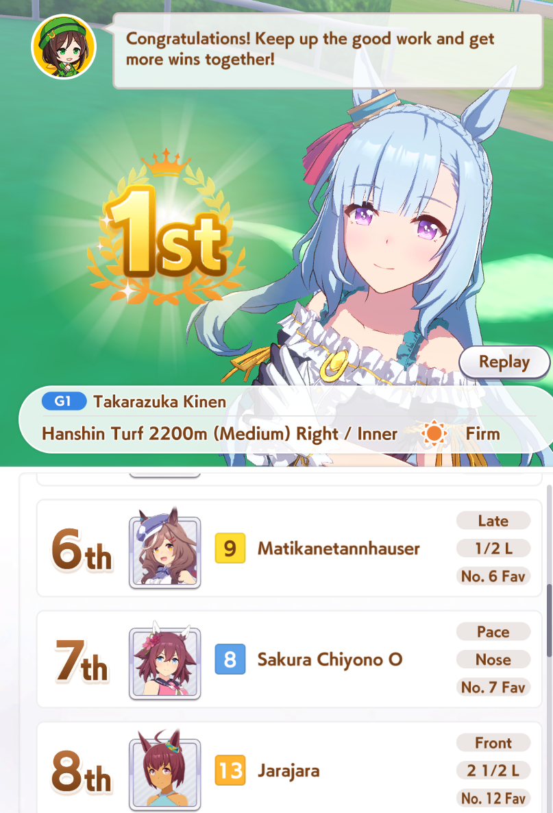 >>558602380I wasn't going to roll but she seduced me. We'll see if I can resist CB in August. Got 3 good umas (Ardan/Dober/Seiun Sky)off the banner out of 6 new umas (NY Urara, FFuku, Spefat) and 5 dupes, but the damage could be worse. I've wanted Seiun and Dober for ages, so having to pity Ardan sucks, but that's my fault for impulse rolling, sunk fallacy farming, and going all-in. If Kitasan isn't merciful I don't think I'll get her next month (down to 15k carats), but Ardanwife is pretty damn cute so it's fine. Tabun. . .