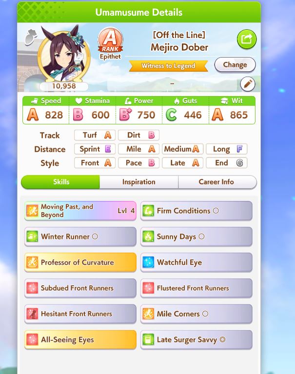 I knew I shouldn't had skipped Dober... but I had no rolls at the time... (That I could afford spending)... Literally the best Mejiro and I feel nothing but REGRET not pulling her and not having her
