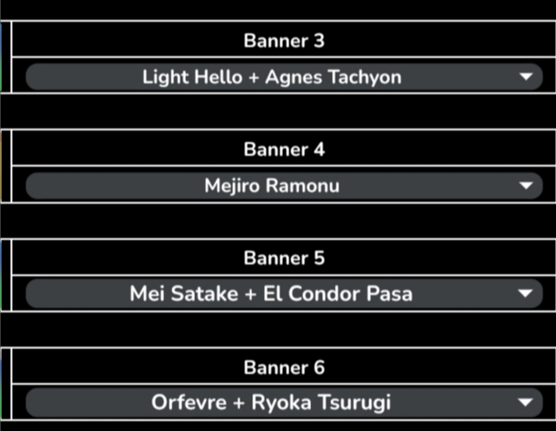 Previous: >>558578469>Global Game NewsLink your account to Cygames iDCurrent Scenario: Aoharu Hai aka "Unity Cup"Current Rate Up Trainee: Mejiro Ardan (3*), Mihono Bourbon (3* alt), Eishin Flash (3* alt)Current Rate Up Support Cards: SSR Agnes Digital (Power), SSR Nishino Flower (Wit), SSR Sakura Bakushin O (Guts), SR Ines Fujin (Wit)Current CM: Aquarius Cup - Tokyo Turf 1600mMain Story Chapter 5 is out02/18 - 03/01 - Valentine Bourbon & Valentine Flash 3*+Nishino SSR+Bakushin SSR02/18 - 03/01 - The Peak of Confection02/25 - 03/05 - Mejiro Ardan 3*+Agnes Digital SSR02/26 - 03/07 - Legend RacesEarly March - Aquarius Cup - Tokyo Dirt 1600m Left-handed / Winter / Sunny / Firmhttps://umamusume.com/news/100040/https://pages.snep.pw/uma/anni-skill-changes/>JP Game NewsCurrent Rate Up: Almond Eye (3*), SSR Forever Young, SSR Casino DriveNew Scenario "Beyond Dreams" releasedTimeline: https://uma.moe/timelineCygames Webstore: https://webstore.cygames.com/en/umamusume_en/>Thread Clubshttps://rentry.co/umaglobalclublistYou must be E3 (20k points) to join a circle. Apply with /uma/ or /vg/ in your profile or post ID in the thread.>All Guides & Resourceshttps://rentry.org/uma26Game databasehttps://gametora.com/umamusume (Click the gear to switch between JP / global server info)A basic guide for newfagshttps://rentry.org/umaglobalFind networks if your region is blocked from the game or clienthttps://www.umavpn.top/93Seiyuu & Concertshttps://rentry.org/umstUmamusume Birthday Calendarhttps://ウマ娘.攻略.tools/events/birthdayUma Texthttps://umareader.idsmile.xyz/