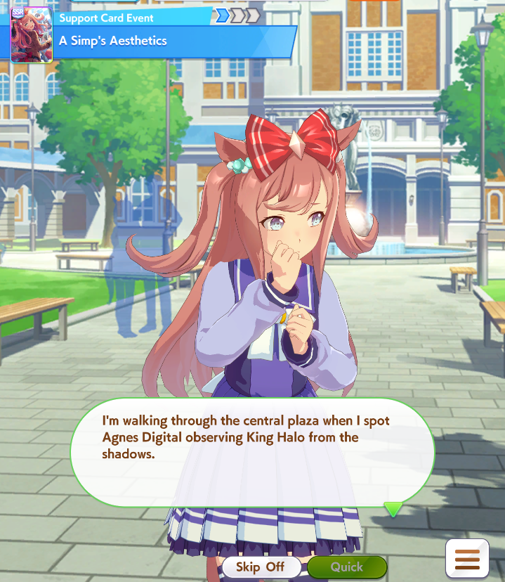 >>558602829I haven't decided she's worth spending, I'm carrot broke right now, and already am going to have to spend on Kitasan and Diamond so I'm thinking of skipping her.